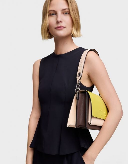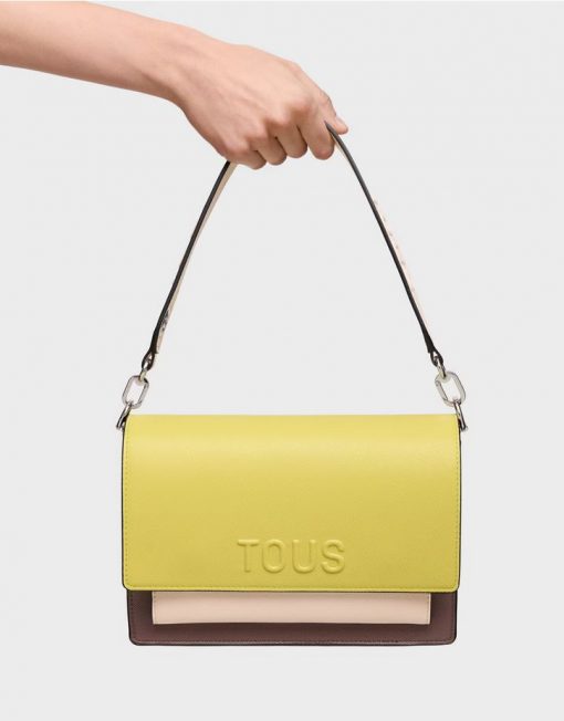Bolso bandolera mediano Audree Saffiano de poliuretano en color lima y nude. Cierre de solapa con cierre de botón magnético. Dos compartimentos separados por otro compartimento con cierre de cremallera y bolsillo abierto en la parte delantera. Asa de hombro desmontable y asa bandolera ajustable y desmontable. Medidas (alto x ancho x fondo): 16 x 25 x 11 cm.