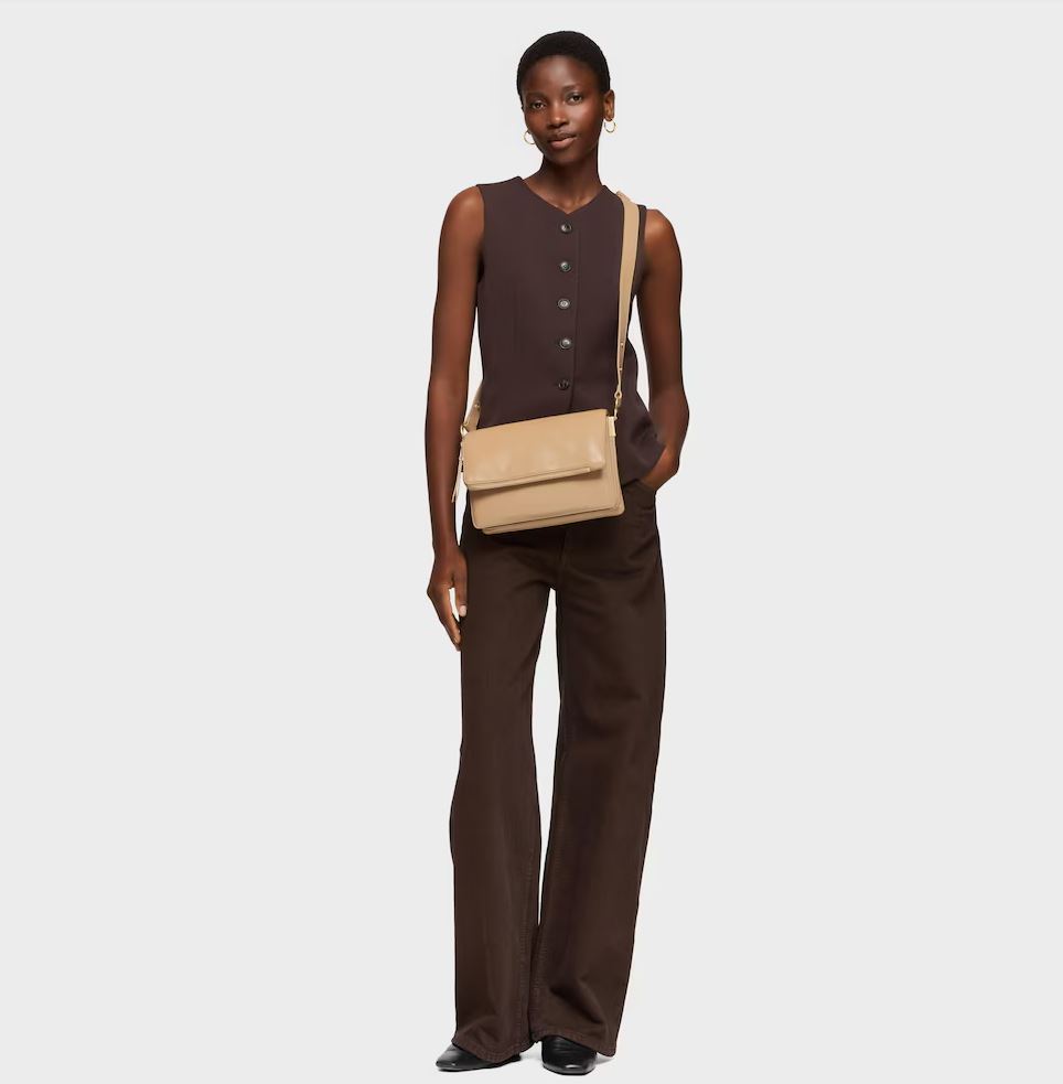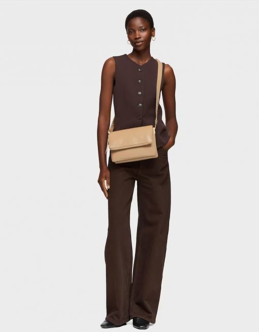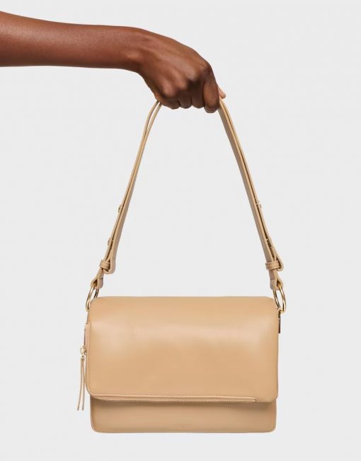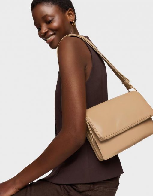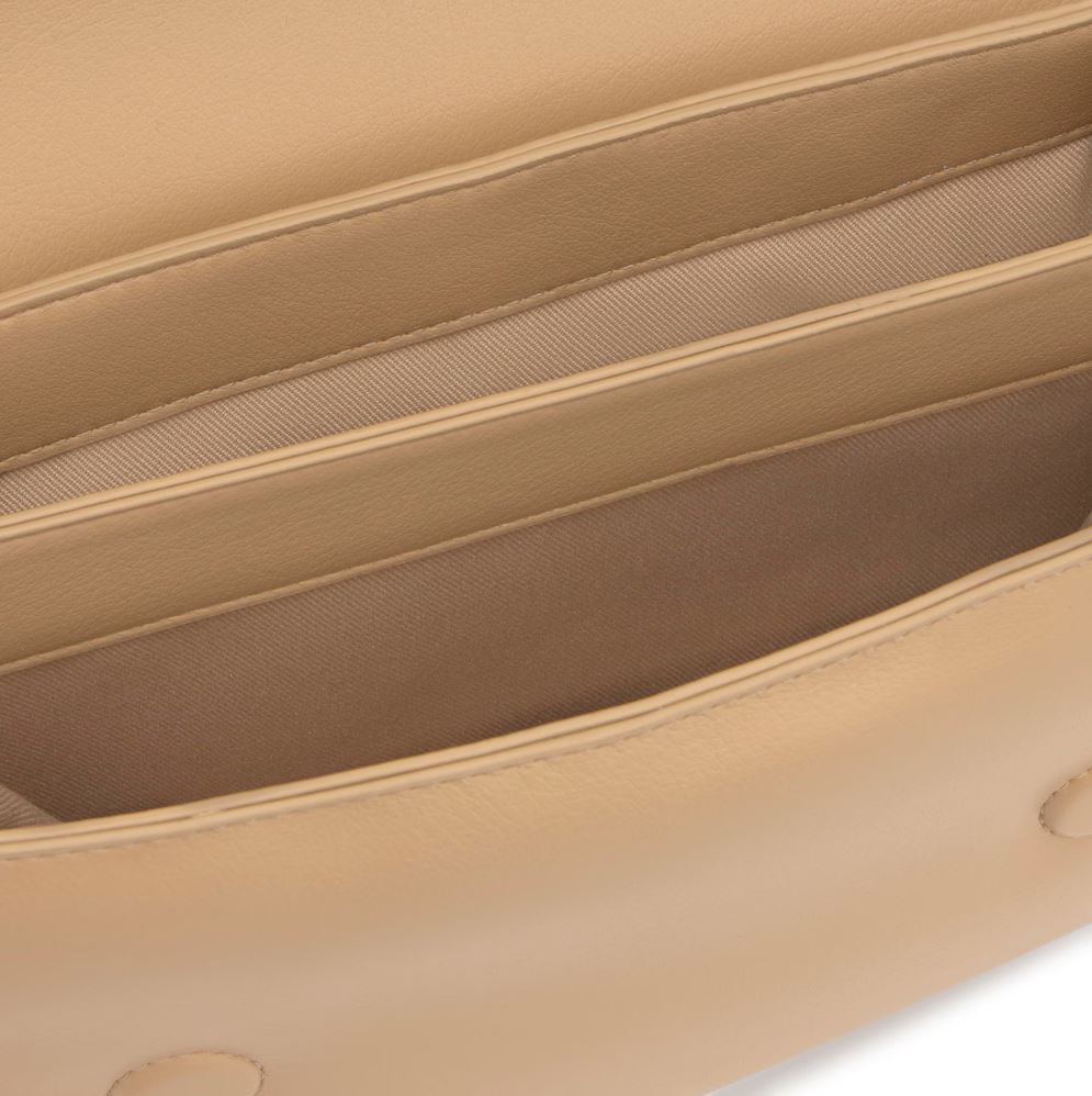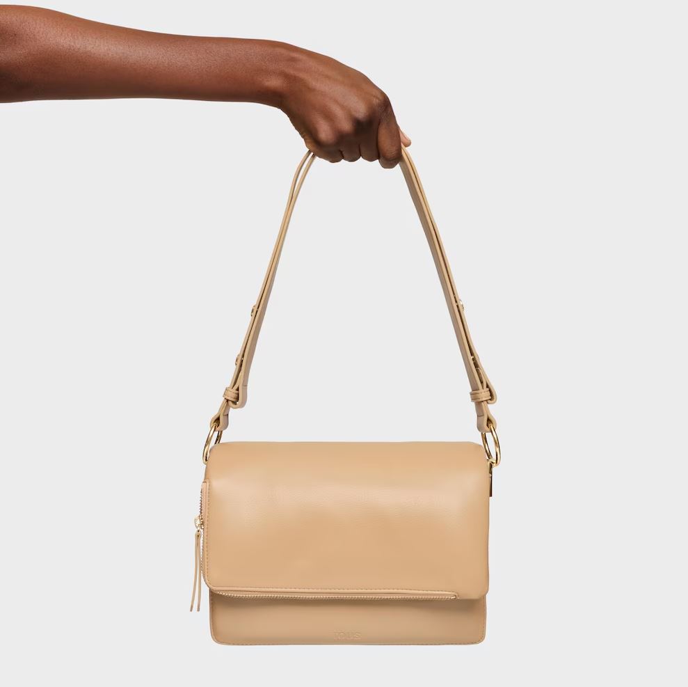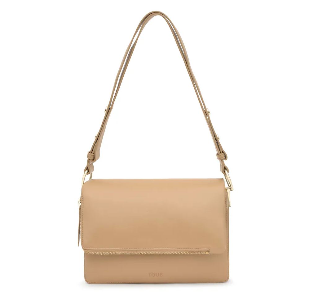 Bandolera mediana Audree Soft en color arena. Cierre de solapa magnética. Bolsillo interior abierto. Dos compartimentos abiertos en el interior. Asa bandolera ajustable a asa de hombro. Medidas (alto x ancho x fondo): 17 x 25 x 10 cm.