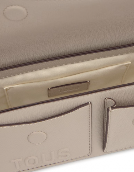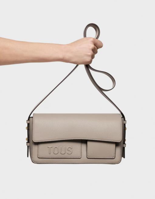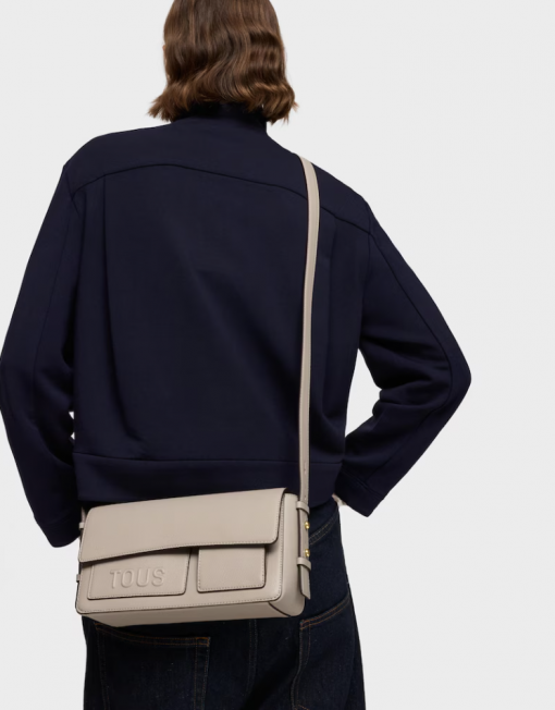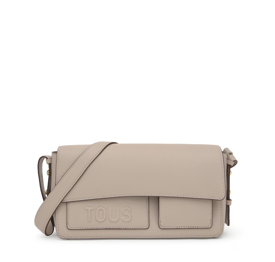 Bolso bandolera mediano TOUS Back to basics de poliuretano en color topo. Cierre de solapa con botón magnético. Bolsillo interior abierto. Dos bolsillos exteriores abiertos. Asa bandolera ajustable. Medidas (alto x ancho x fondo): 14 x 29 x 9 cm.