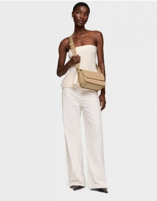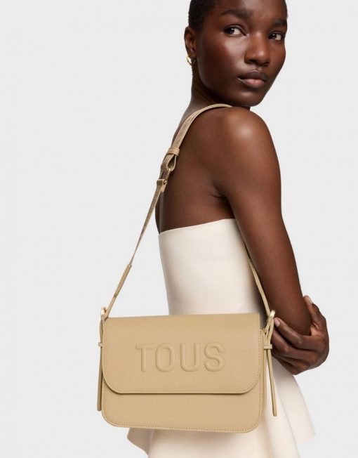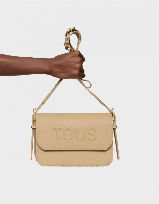 Bolso bandolera mediano TOUS Brenda de poliuretano en color arena. Cierre de solapa con botón magnético. Bolsillo interior abierto. Asa bandolera ajustable. Medidas (alto x ancho x fondo): 17 x 28 x 7 cm.