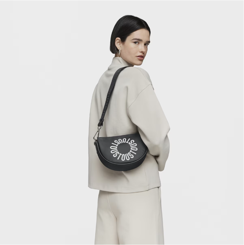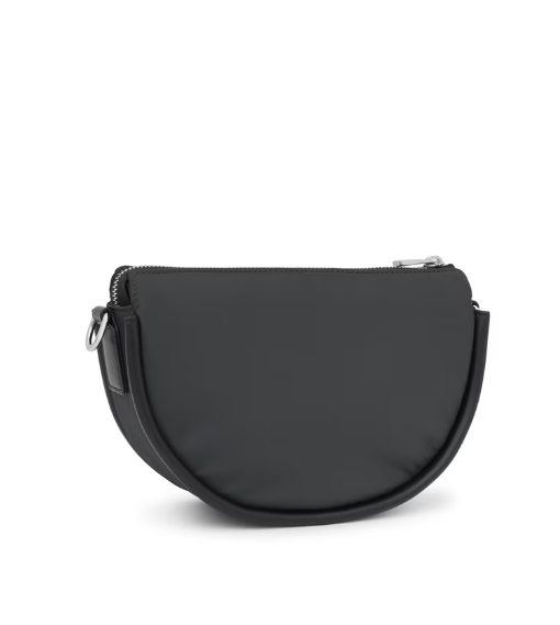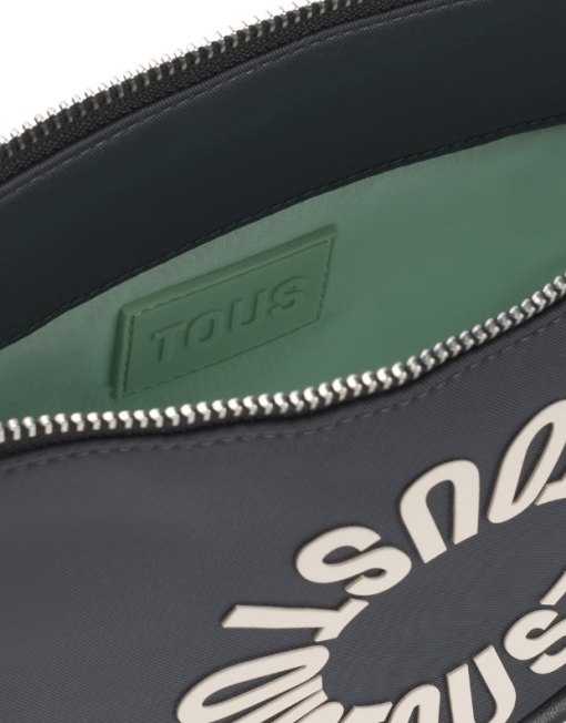 Bolso bandolera mediana TOUS Miranda Soft de lona con detalles en poliuretano de color gris oscuro. Cierre de cremallera. Asa bandolera ajustable y extraíble. Medidas (alto x ancho x fondo): 15 x 25 x 6,5 cm.