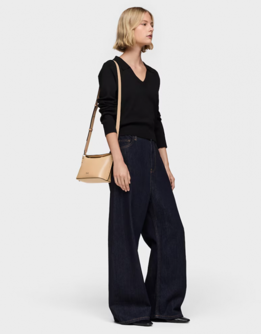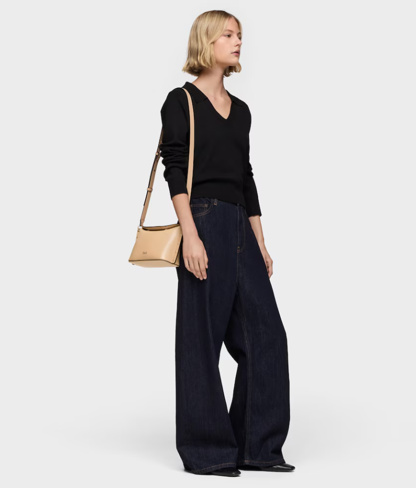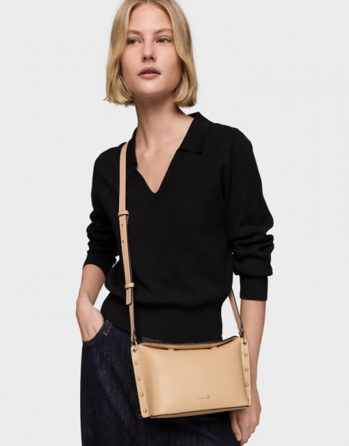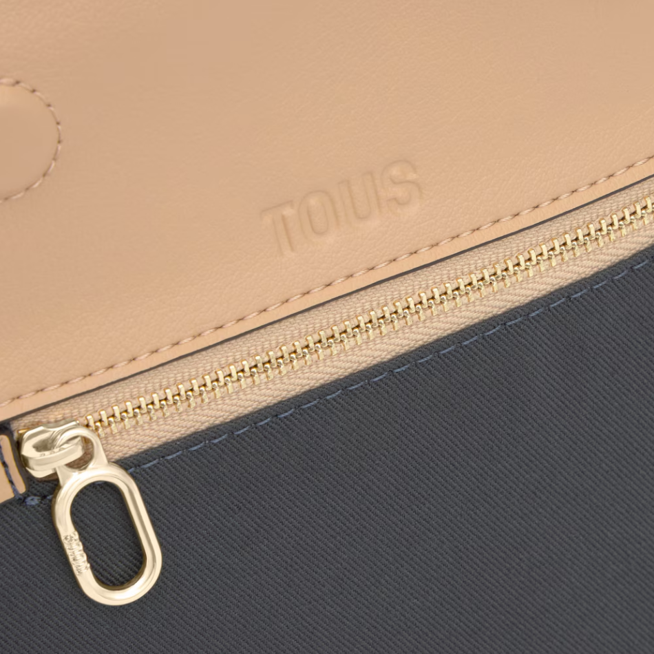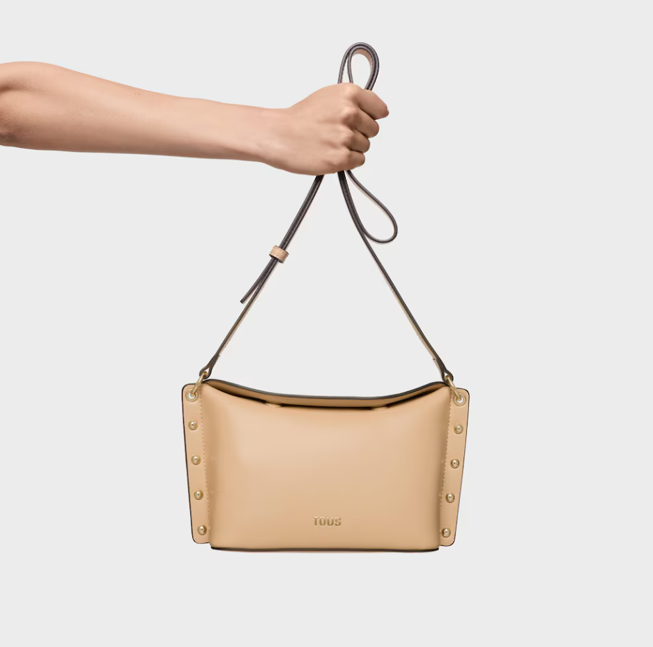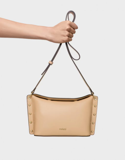 Bolso bandolera pequeño TOUS Jewelry Studs de poliuretano en color arena. Cierre magnético. Asa bandolera ajustable. Bolsillo interior con cremallera. Medidas (alto x ancho x fondo): 16 x 27 x 10 cm.