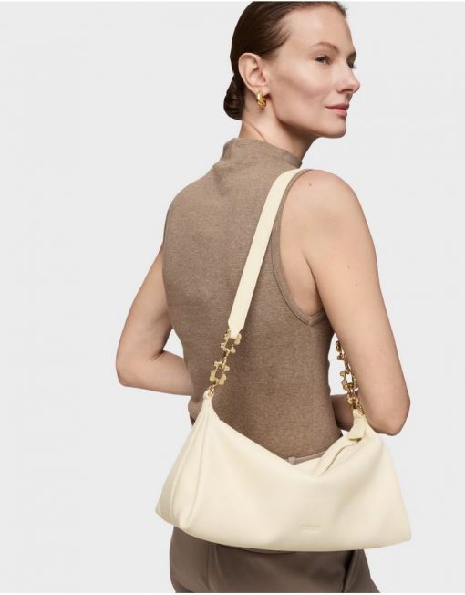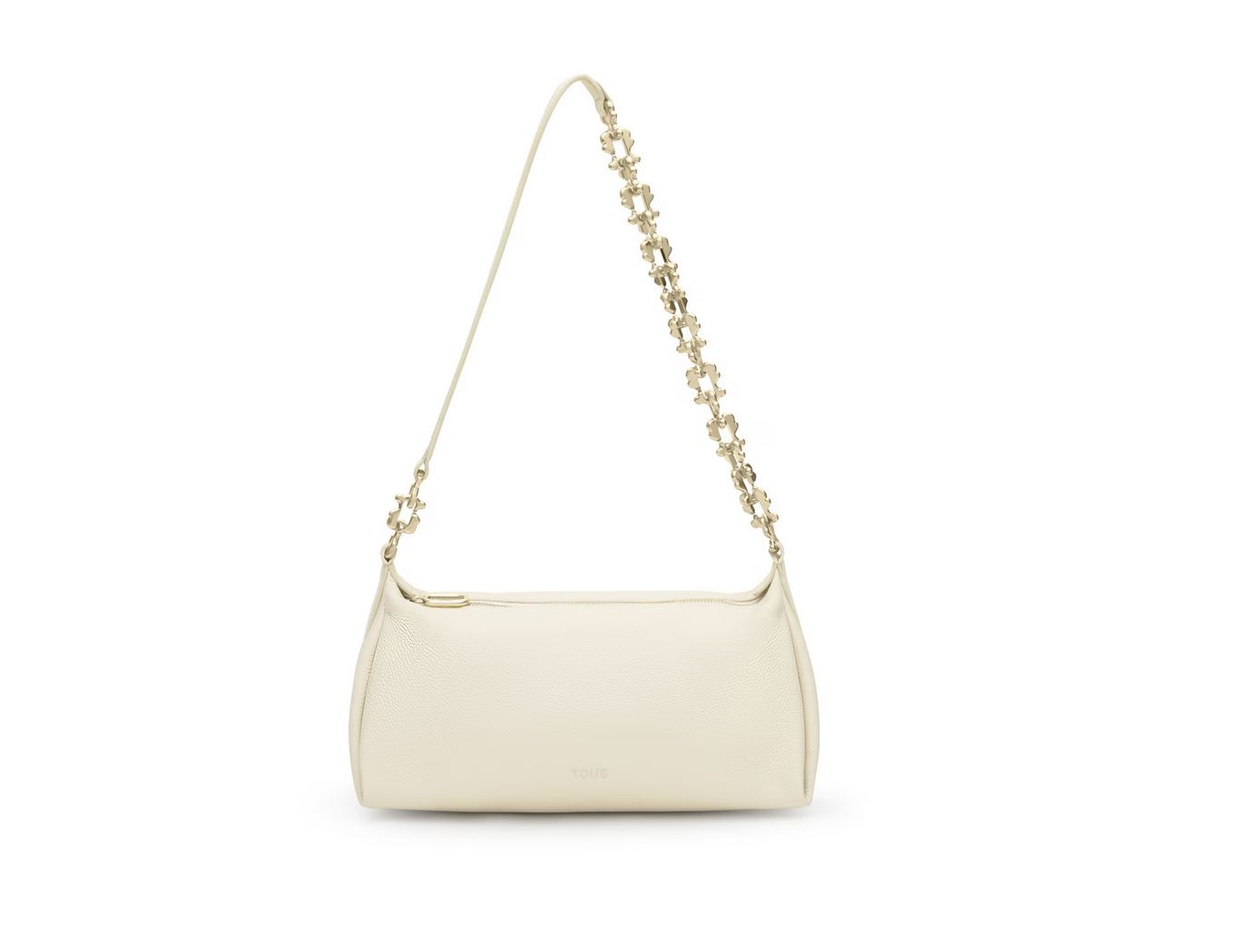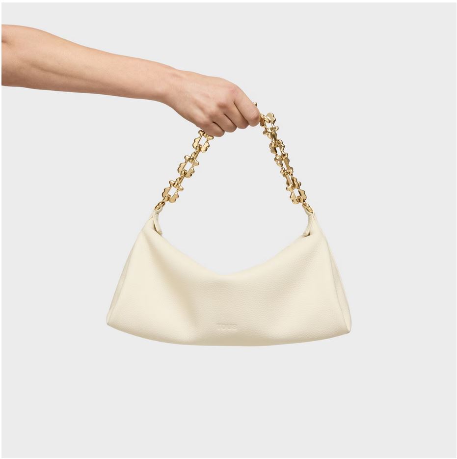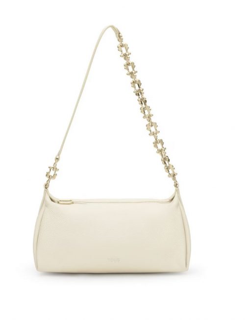 Bolso bandolera mediana chain de piel TOUS Fold de piel vacuna con certificación LWG en color beige. Cierre de cremallera. Bolsillo interior con cremallera. Asa bandolera ajustable. Medidas (alto x ancho x fondo): 18 x 34 x 15 cm.