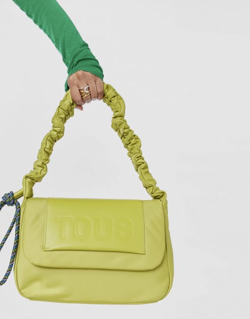 Bolso bandolera TOUS Marina de poliéster reciclado con detalles de piel sintética en color azul lima. Cierre con solapa y botón magnético. Bolsillo trasero con cremallera y bolsillo interior abierto. El asa fruncido permite llevar el bolso como bandolera o bolso de hombro. Medidas (alto x ancho x fondo): 18 x 28 x 12 cm.
