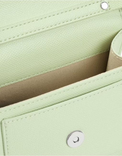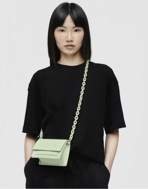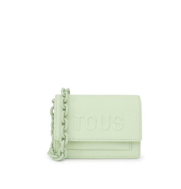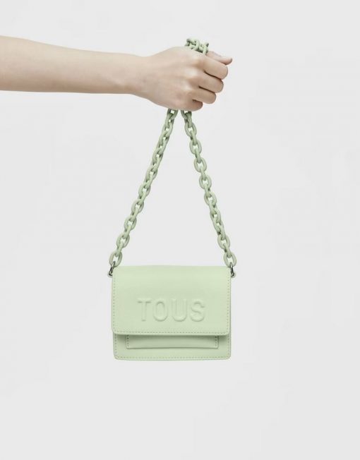 Bolso mini bandolera Audree TOUS La Rue New de piel sintética en color menta. Cierre de solapa con botón magnético. Cuenta con un bolsillo abierto en la parte delantera. Asa bandolera fija de cadena engomada. Medidas (alto x ancho x fondo): 12 x 17 x 9 cm.