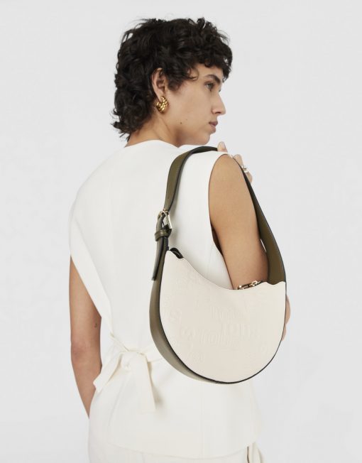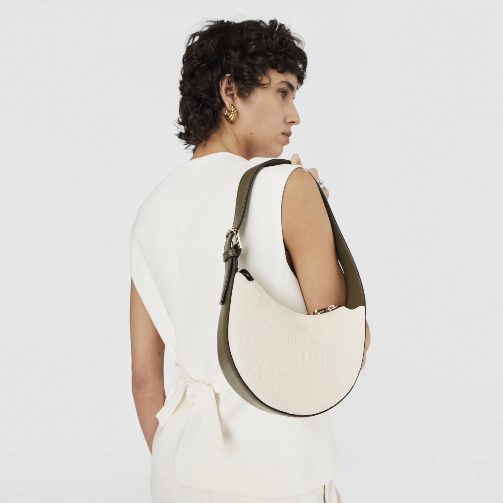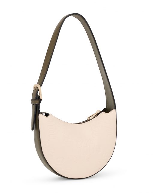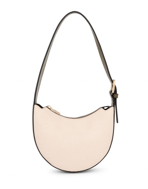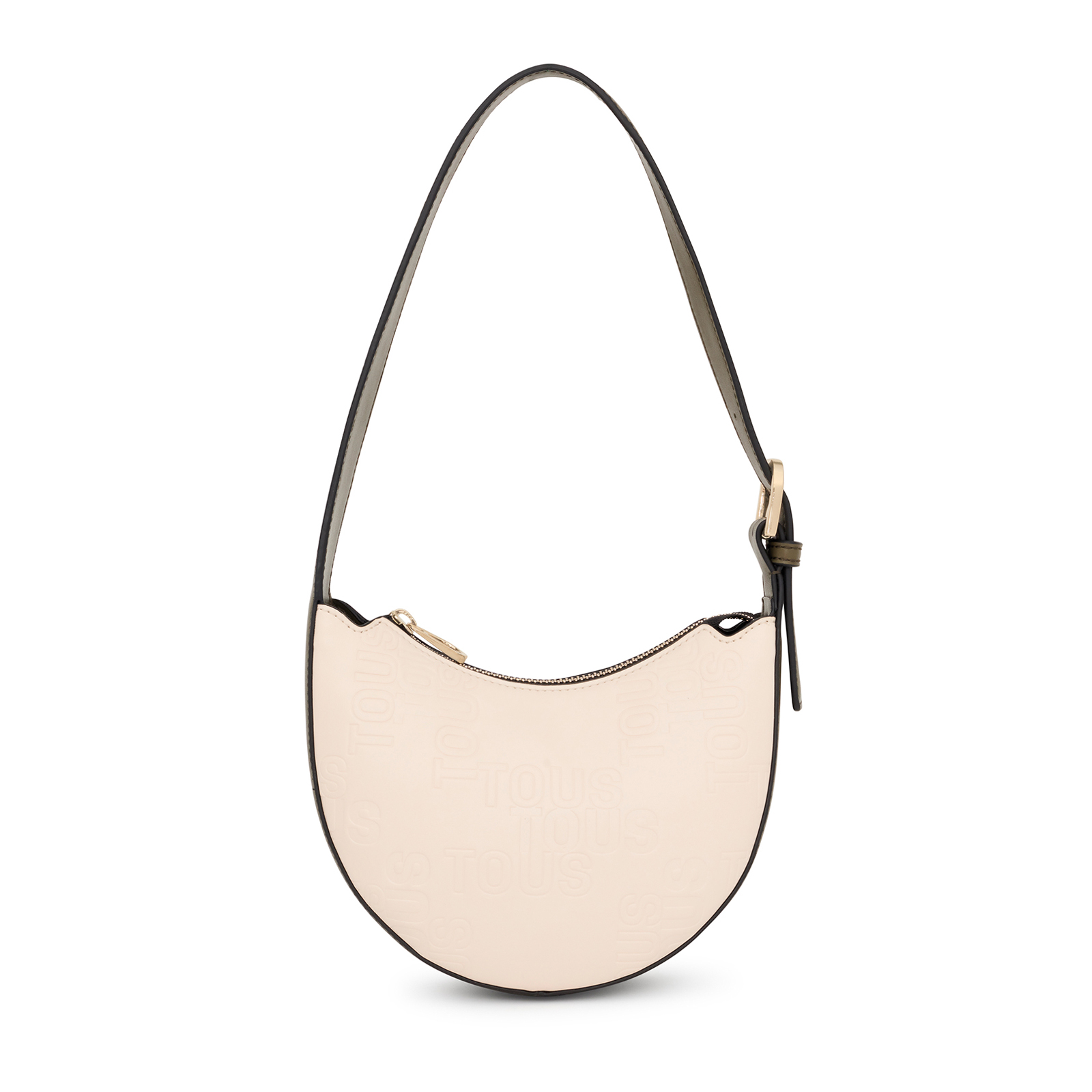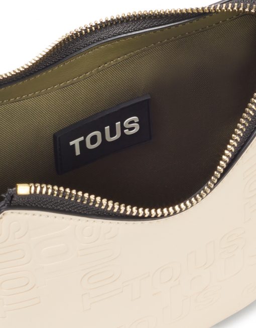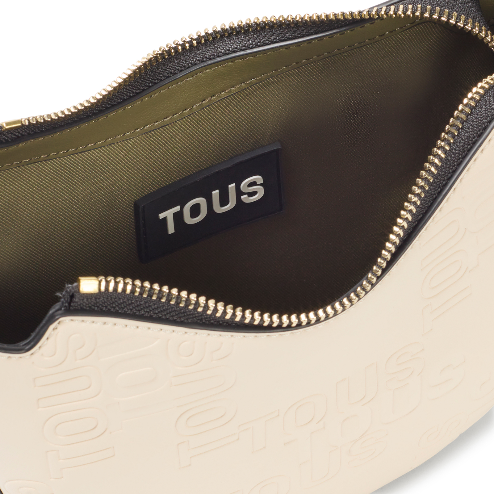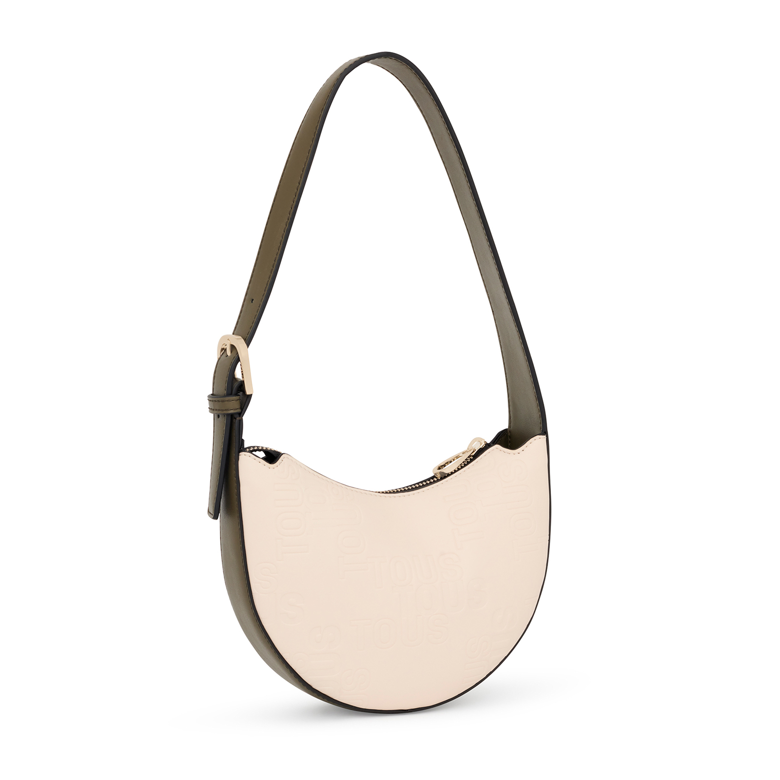 Bolso baguette TOUS Nanda de piel sintética en color beige y caqui. Bolso en forma de media luna, con cierre de cremallera y asa de hombro ajustable. Medidas (alto x ancho x fondo): 15 x 20 x 6 cm.