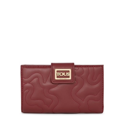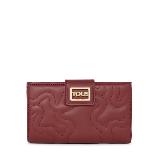 Billetera grande TOUS de la colección Kaos Dream de poliuretano acolchado en forma de osos con acabado efecto piel en color burdeos. Cierre con botón a presión. Interior: 9 compartimentos para tarjetas, 3 compartimentos grandes para otras pertenencias y un compartimento con cremallera. Medidas: 12 x 19 x 3 cm.