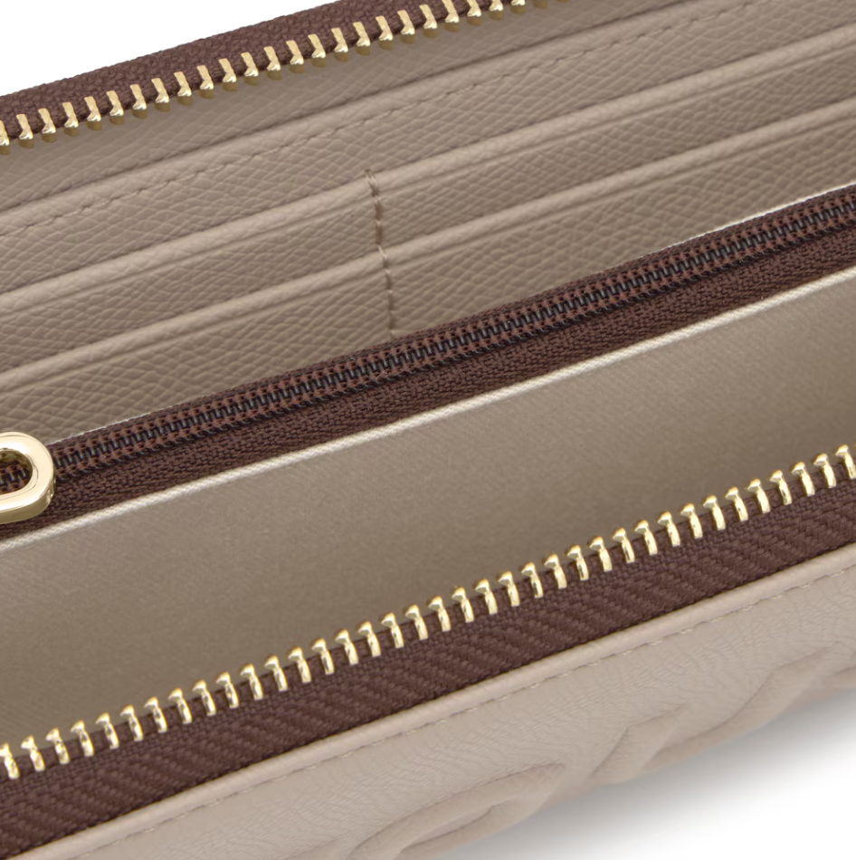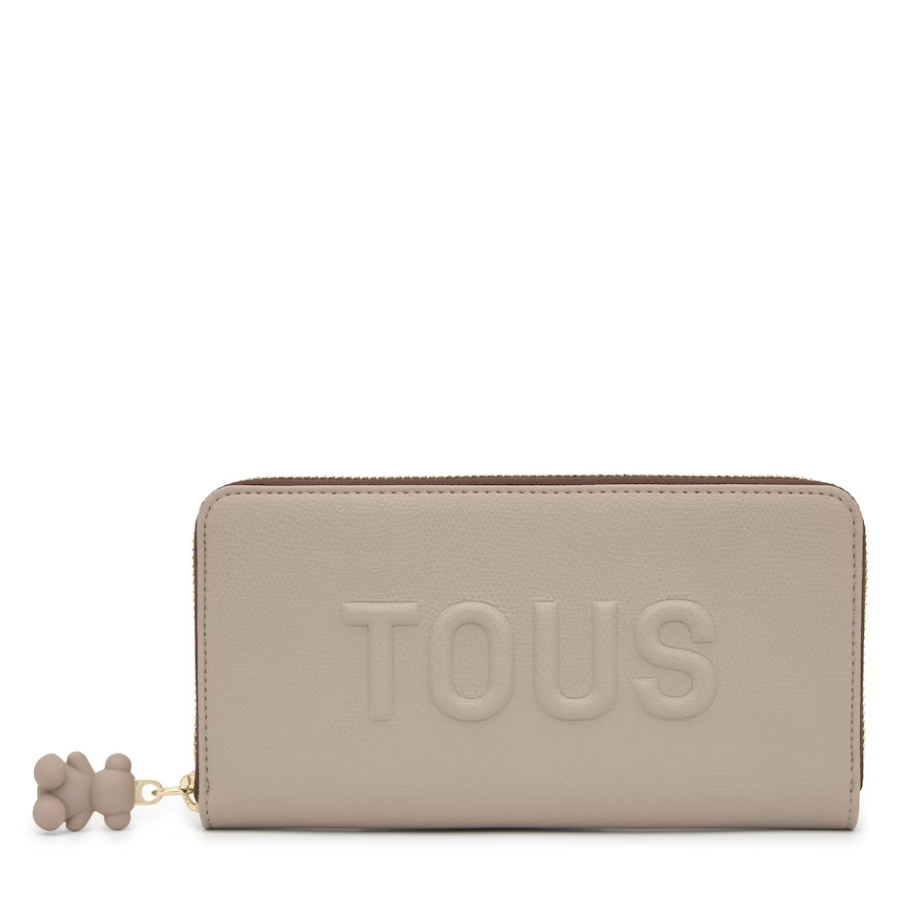Billetera TOUS Back to basics de poliuretano en color topo. Cierre de cremallera. En el interior cuenta con dos compartimentos abiertos para billetes, un compartimento con cremallera para monedas y ocho ranuras para tarjetas. Medidas (alto x ancho x fondo): 10 x 19,5 x 3 cm.