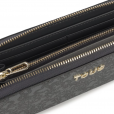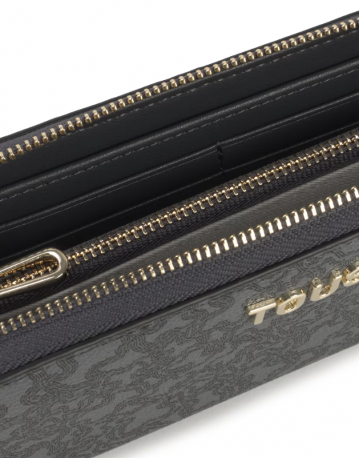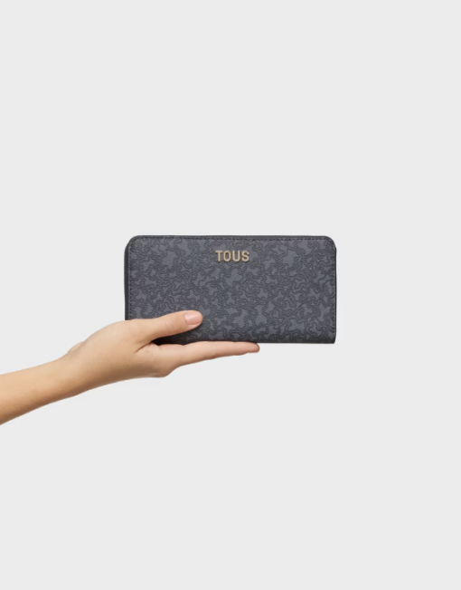 Billetera Kaos Mini Lines de lona en color gris oscuro. Cierre de cremallera. En el interior cuenta con un bolsillo con cremallera para monedas, ocho ranuras para tarjetas y cuatro compartimentos abiertos para billetes. Medidas (alto x ancho x fondo): 10,5 x 19,4 x 2 cm.
