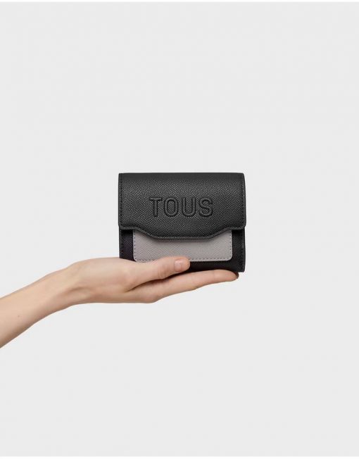 Cartera Audree Saffiano de poliuretano en color negro y gris. Cierre de botones a presión. En el interior cuenta con seis ranuras para tarjetas y un compartimento para billetes. Bolsillo para monedas con cierre de cremallera. Medidas (alto x ancho x fondo): 10 x 12 x 3 cm