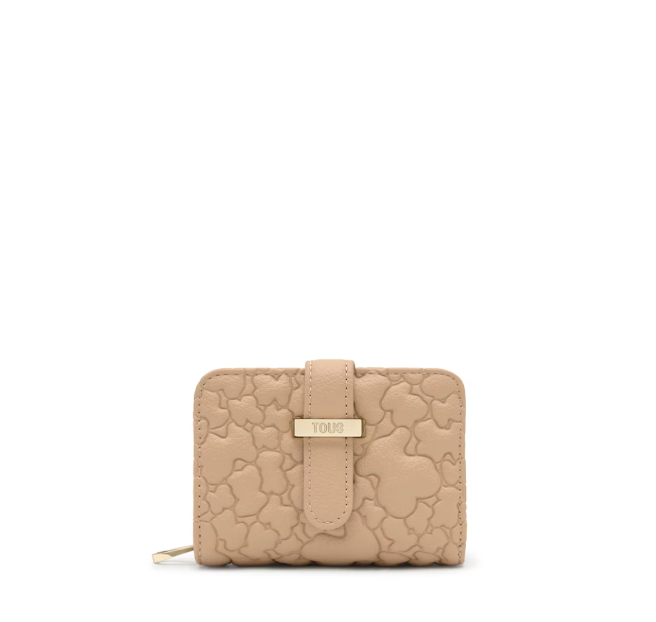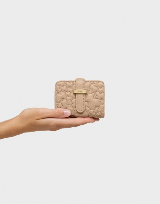 Cartera Bridge Puffy Bear de poliuretano en color arena. Cierre de cremallera. En el interior cuenta con tres compartimentos abiertos para monedas y dos ranuras para tarjetas. Medidas (alto x ancho x fondo): 8 x 10,5 x 4 cm.