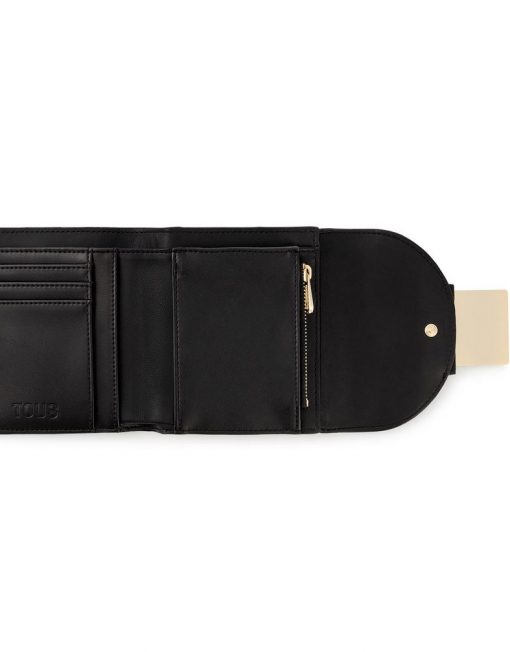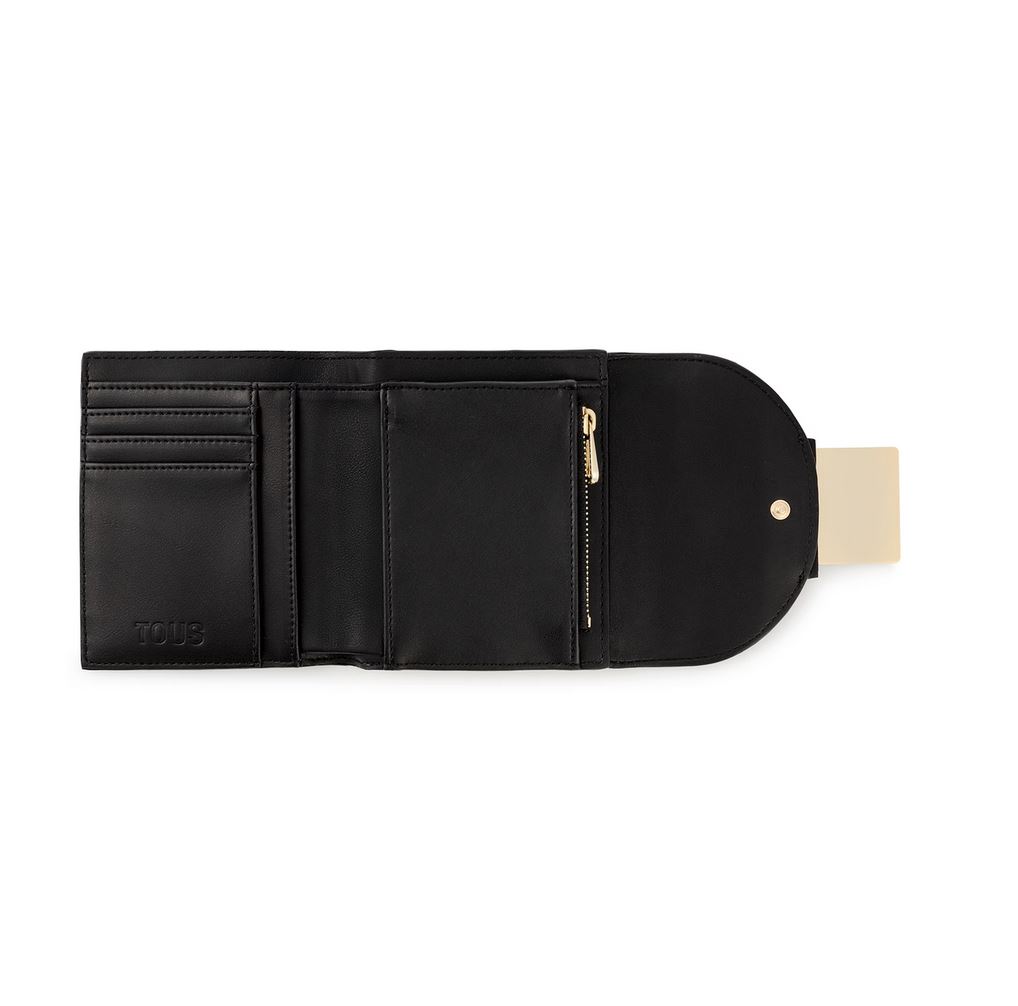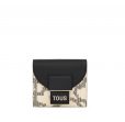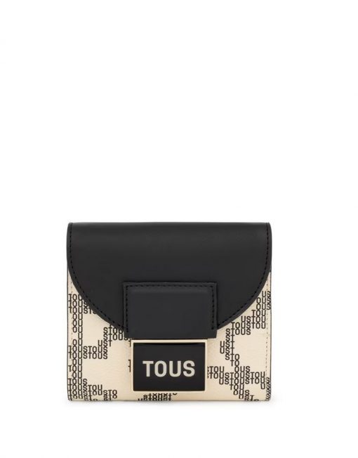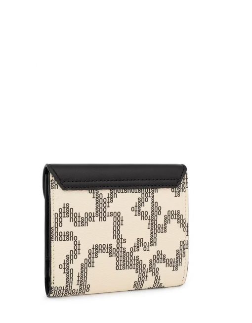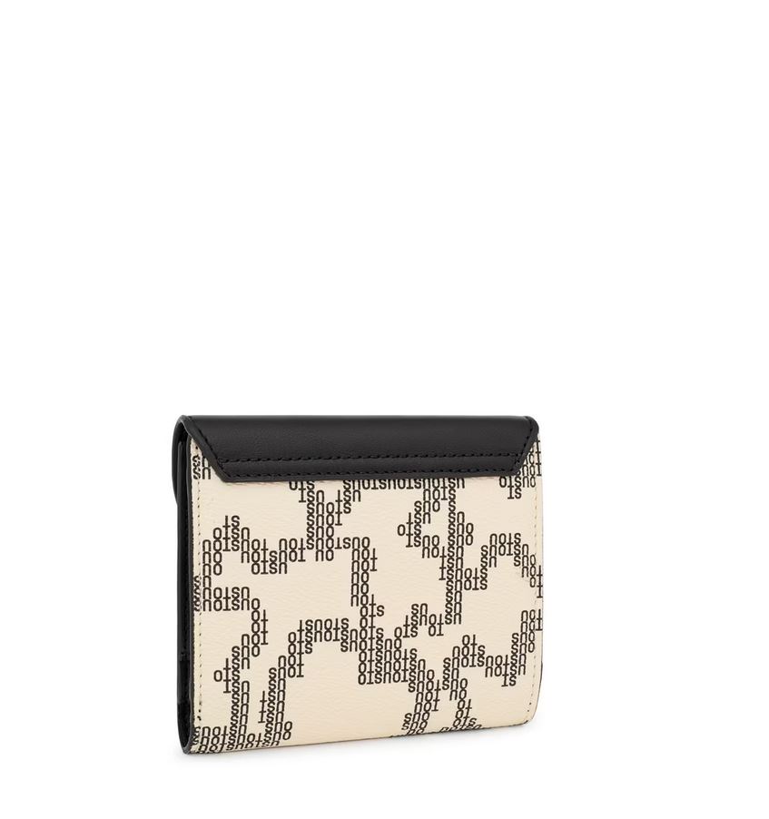Cartera Flap TOUS Kaos Pix de lona con estampado en color beige y negro. También incorpora detalles de piel sintética. Cierre de solapa con botón a presión. En el interior cuenta con un compartimento abierto para billetes, un bolsillo con cremallera para monedas y cinco ranuras para tarjetas. Medidas (alto x ancho x fondo): 10 x 12 x 3 cm.
