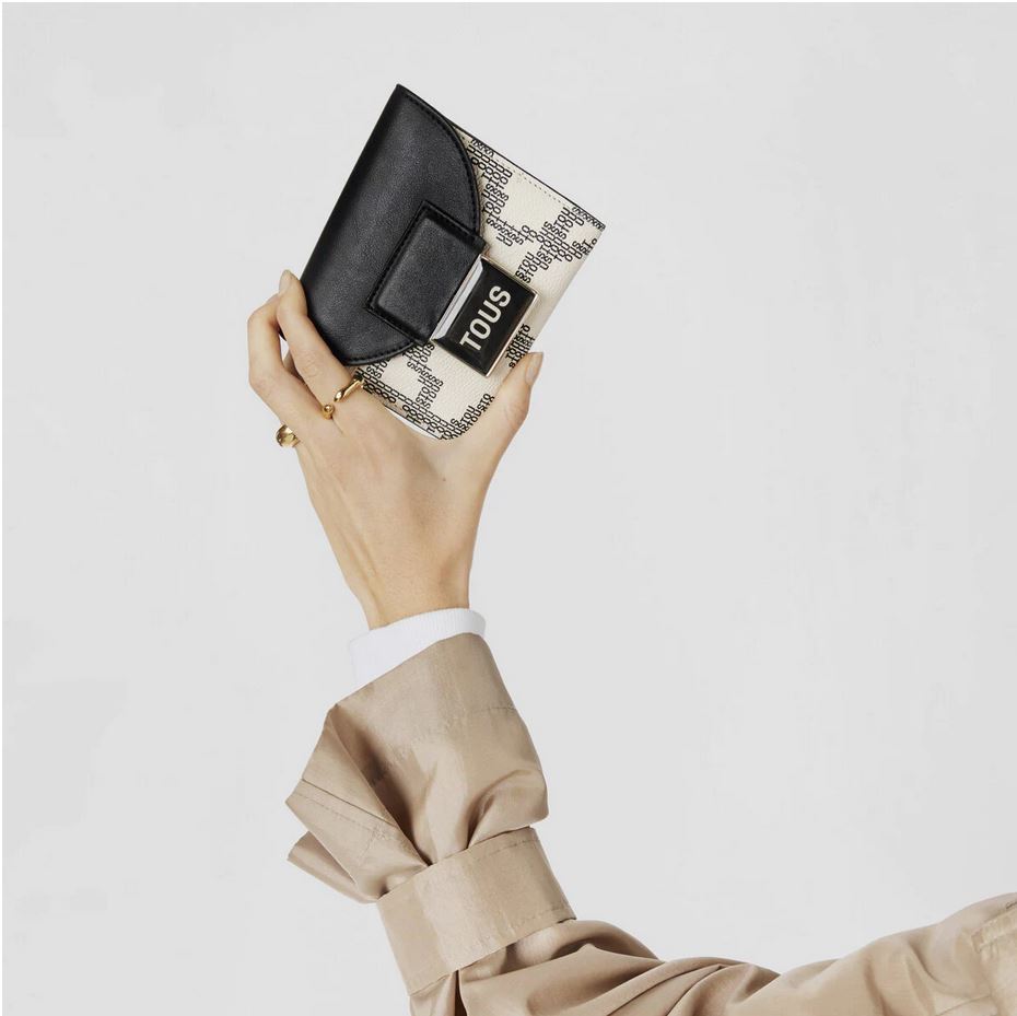 Únete a la revolución de TOUS con la nueva cartera flap de lona en color beige y negro de la colección KAOS PIX, una colección inspirada en el mundo digital de los píxeles, con los que reinterpretamos nuestro icónico estampado como nunca antes lo habías visto.
