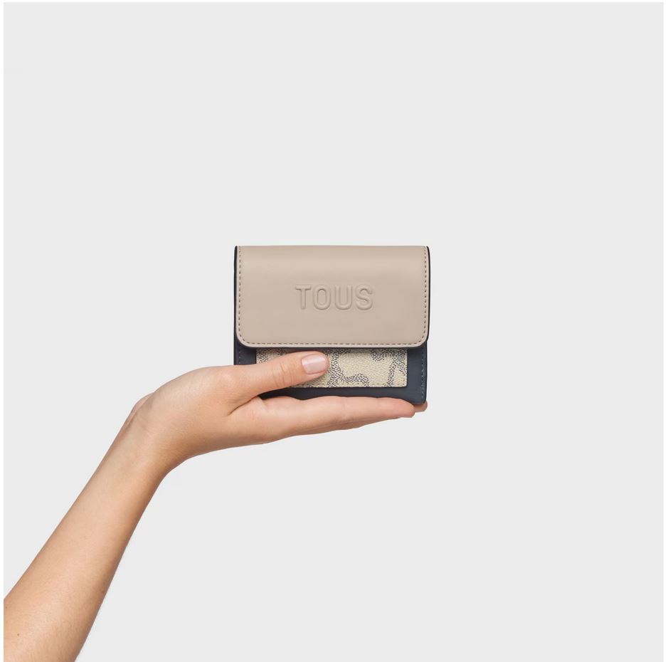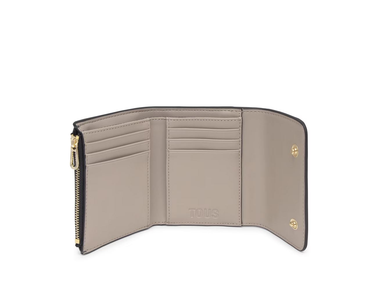 Cartera Kaos Icon de poliuretano en color gris oscuro. Cierre de botones a presión. En el interior cuenta con seis ranuras para tarjetas y un compartimento para billetes. Bolsillo para monedas con cierre de cremallera. Medidas (alto x ancho x fondo): 10 x 12 x 3 cm.