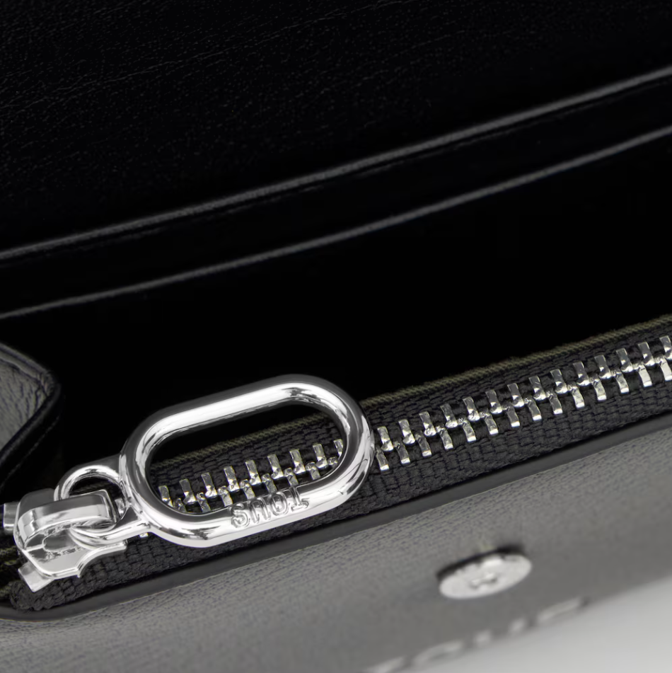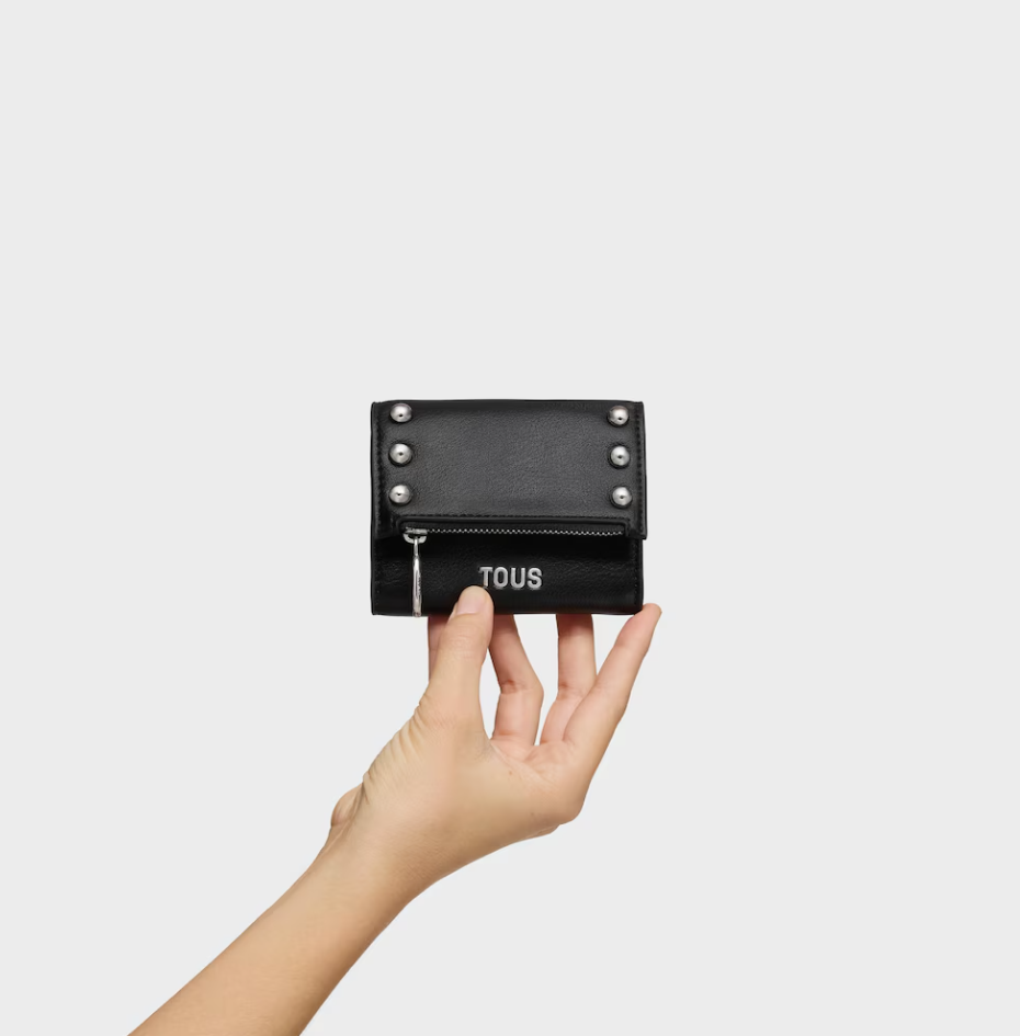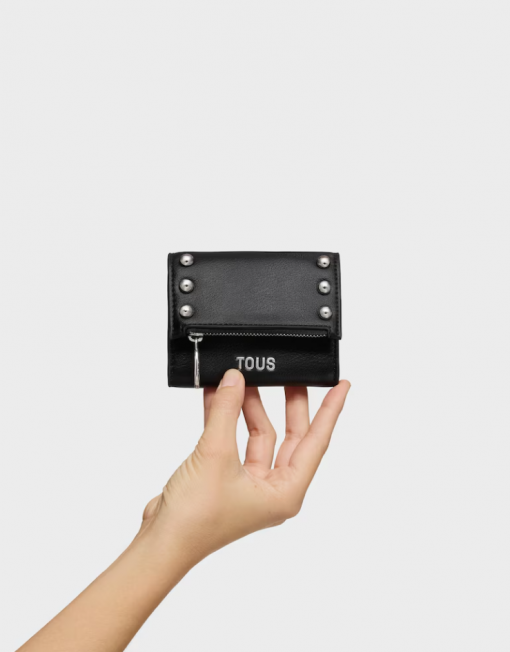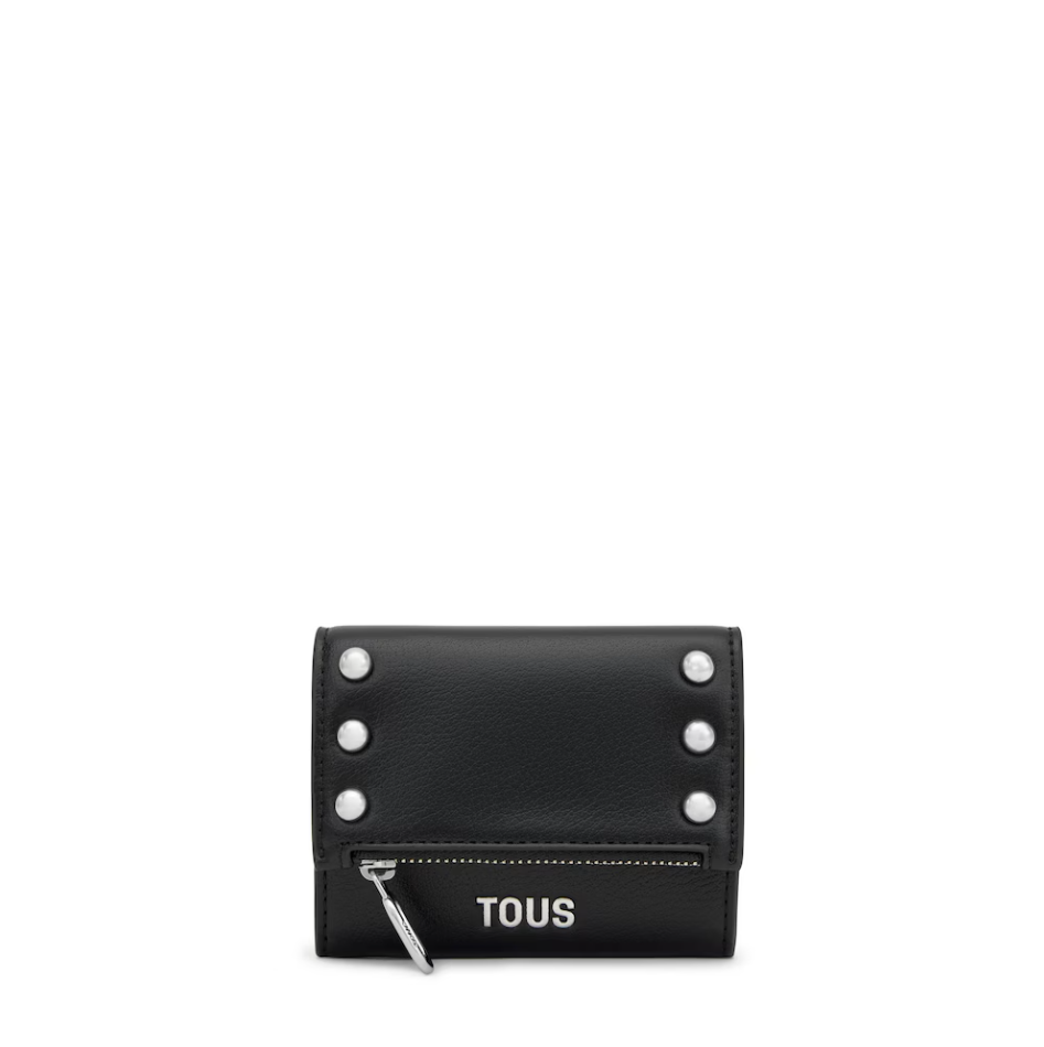 Cartera TOUS Jewelry Studs de poliuretano en color negro. Cierre con botón a presión. Contiene un compartimento abierto y dos con cremallera. Medidas (alto x ancho x fondo): 11 x 8,5 x 2,5 cm