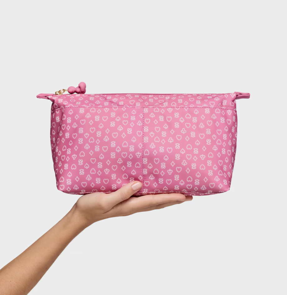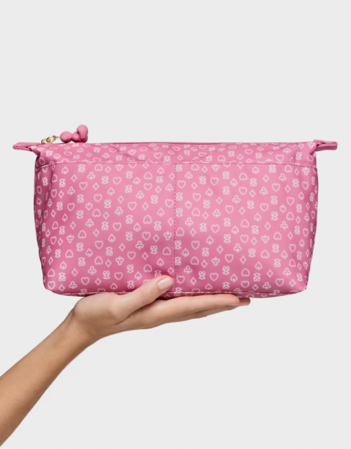 Bolsa Organizadora TOUS Bear Anniversary en color rosa oscuro. Con compartimentos. Cierre con cremallera. Medidas: 18 x 34,5 x 12 cm.