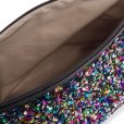 Bolsa pequeña TOUS colección Kaos Shock Sequins de lentejuelas multicolor. Cierre con cremallera. Apliques personalizados en tono dorado pálido. Botones a presión en los laterales para incorporar dentro de un capazo pequeño Kaos Shock. Medidas: 20x26x14 cm.