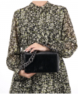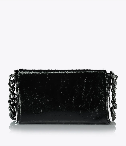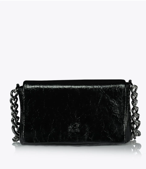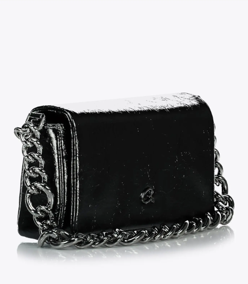 Bolso bandolera de mujer elaborado en polipiel ligera de alta calidad con asa de cadena. Se cierra con un botón magnético en la tapa. El interior está forrado con el logotipo de Axel impreso y cuenta con un compartimento con cremallera. Logotipo ‘a’ de metal en la parte delantera.