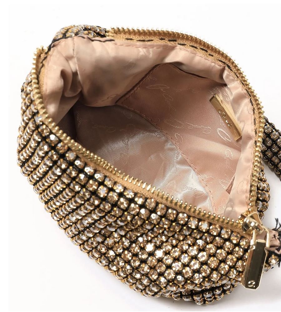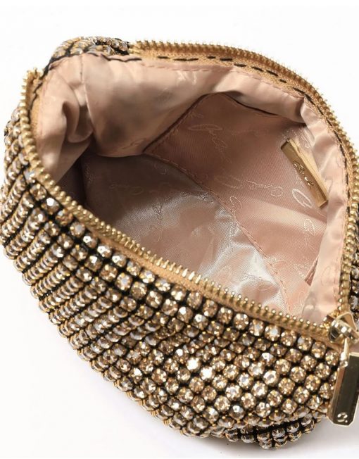 Bolsa de noche de mujeres decorada con strass. Cuenta con cierre de cremallera. El interior está forrado con el logotipo de Axel forro impreso y tiene un bolsillo. Perfecto para ocasiones especiales de la noche.