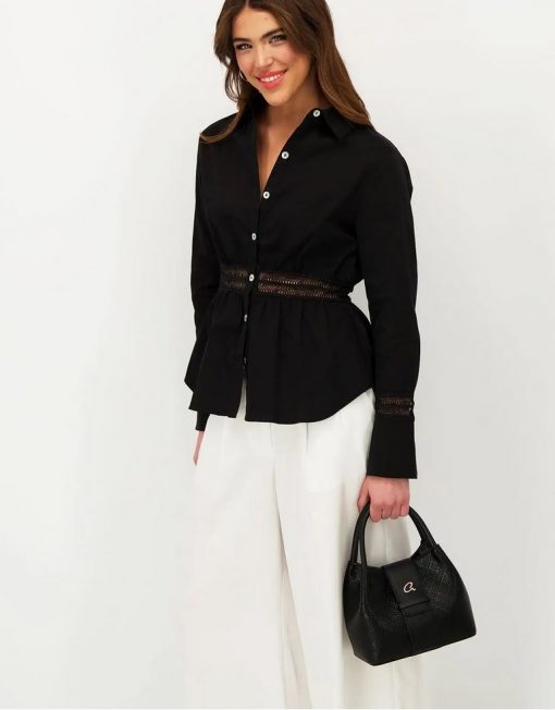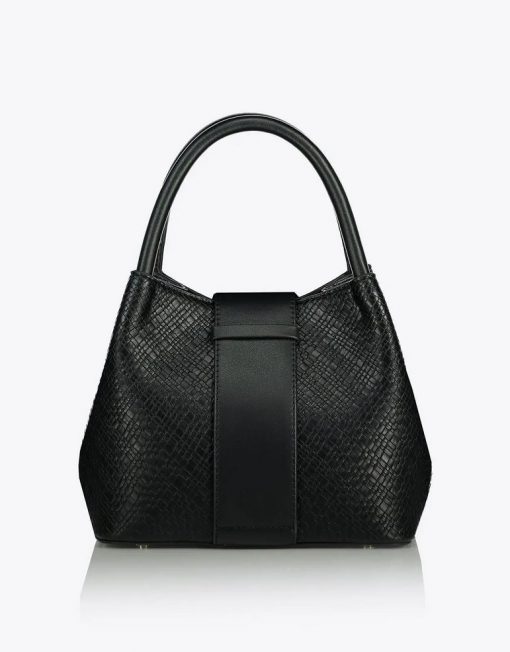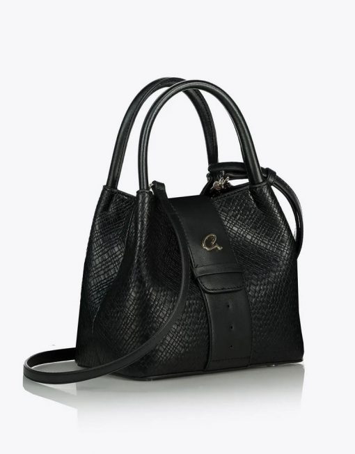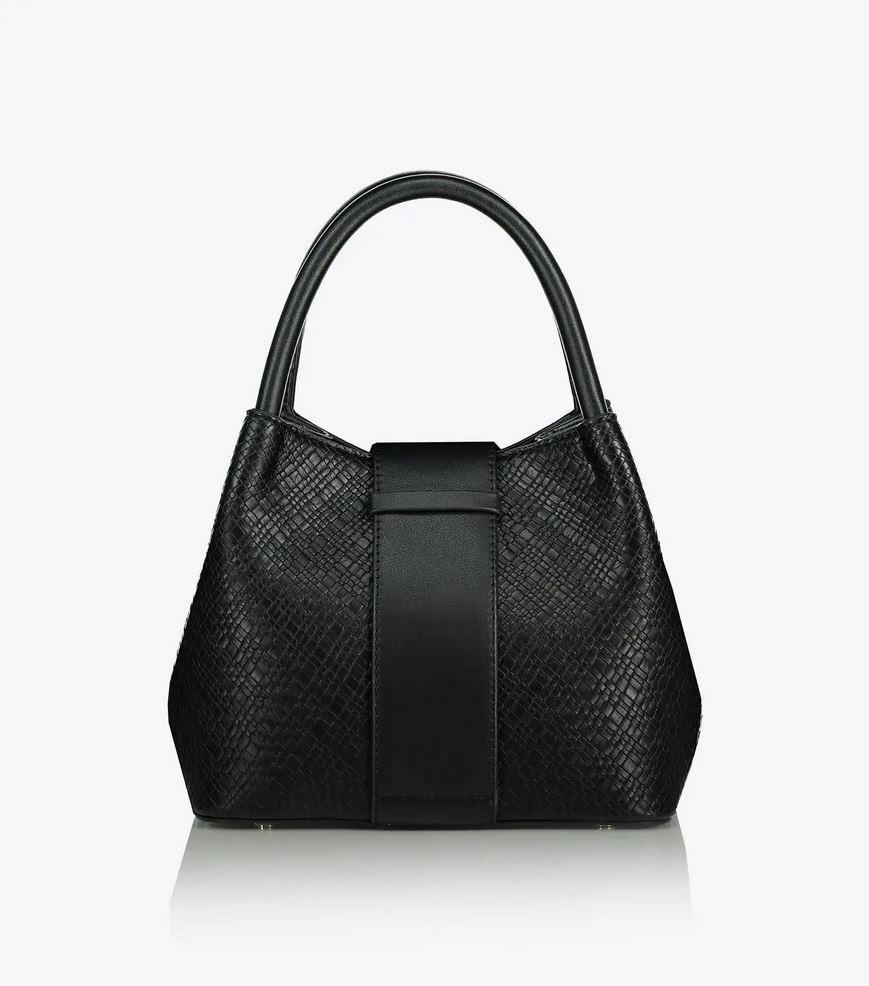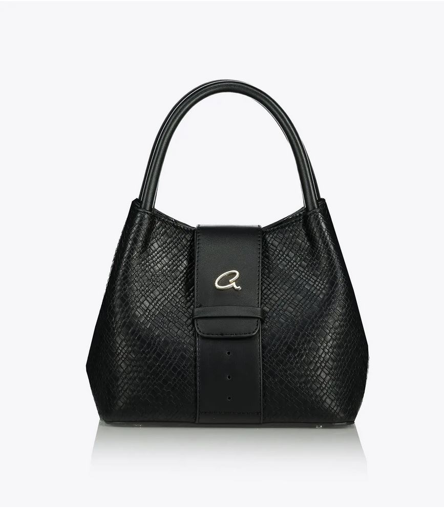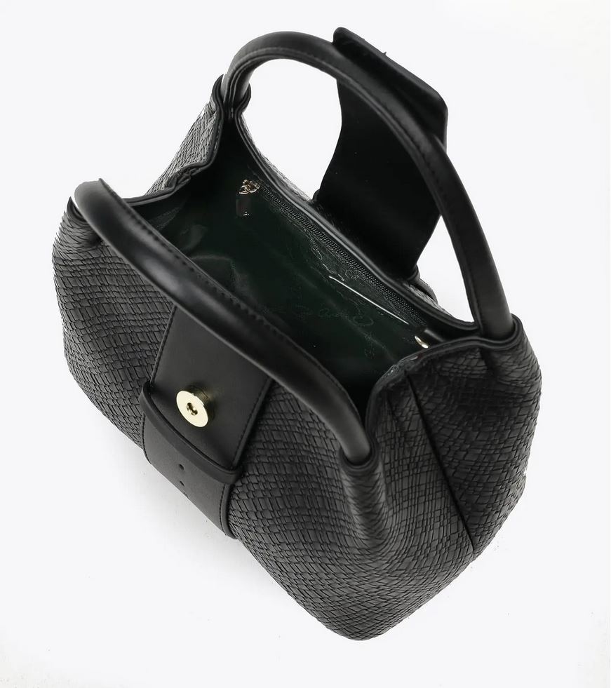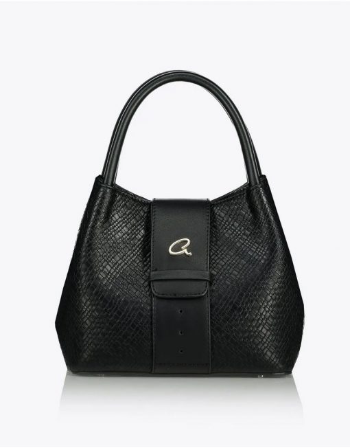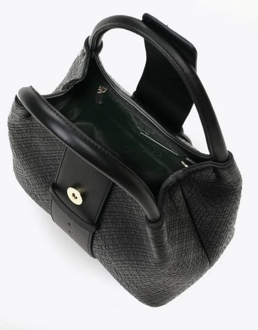 Bolso de mano para mujer fabricado en polipiel con diseño de cesta. Cuenta con asas dobles flexibles, correa para el hombro desmontable y cierre de bolso con broche magnético en el cinturón ajustable. El interior está forrado con forro estampado y hay un bolsillo con cremallera. Logotipo de metal ‘a’ en la parte delantera.