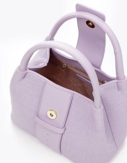 Bolso de mano para mujer fabricado en polipiel con diseño de cesta. Cuenta con asas dobles flexibles, correa para el hombro desmontable y cierre de bolso con broche magnético en el cinturón ajustable. El interior está forrado con forro estampado y hay un bolsillo con cremallera. Logotipo de metal ‘a’ en la parte delantera.