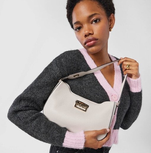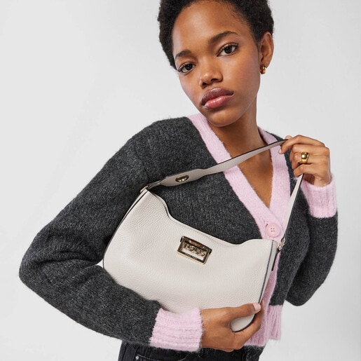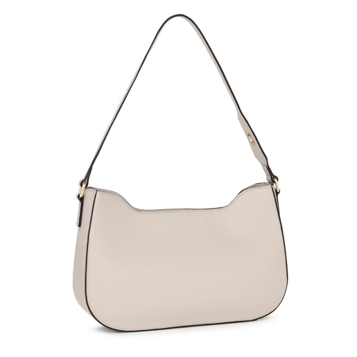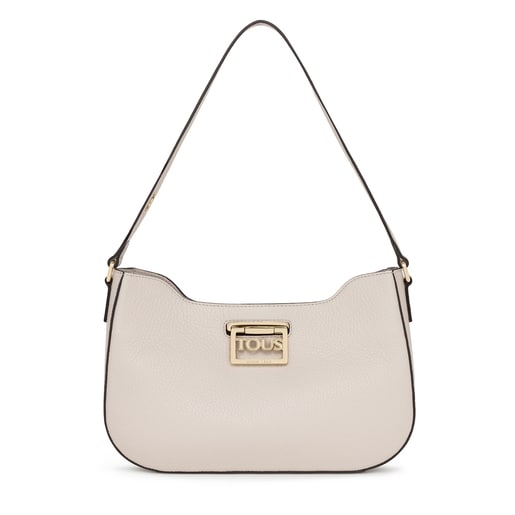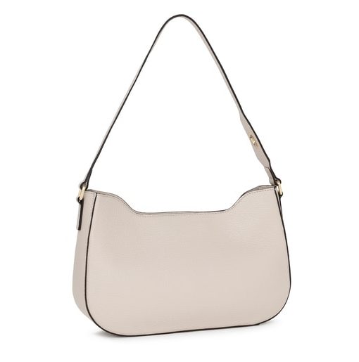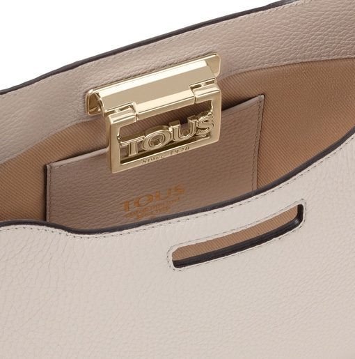 Bolso baguette TOUS Legacy de piel vacuna en color beige. El cierre es con placa giratoria de metal en color dorado. El asa incorpora un ojal para poder colgar un pañuelo de adorno. Incluye un bolsillo interior abierto para tarjetas. Medidas (alto x ancho x fondo): 17,5 x 26,5 x 7 cm.