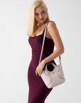 -Cuero sintético exterior. -Cierre magnético. -Herrajes dorados. -Bolsillo interno con cremallera. -Script del logo metálico en la parte frontal. -Pochete integrada con cremallera.