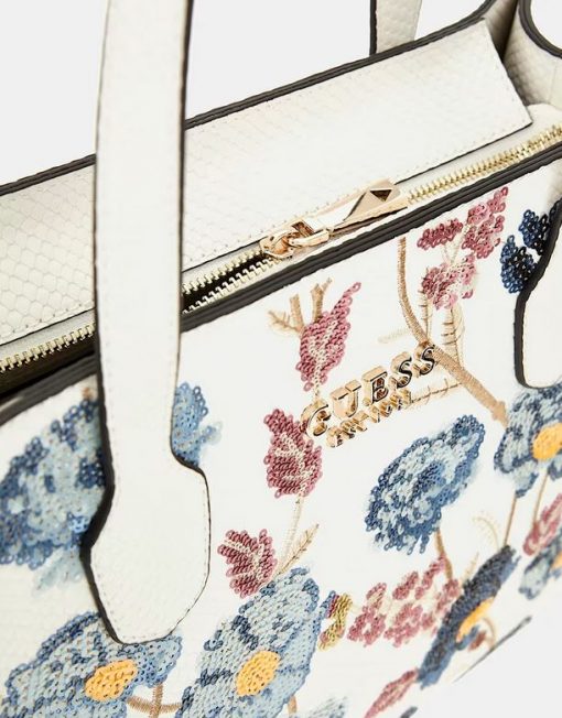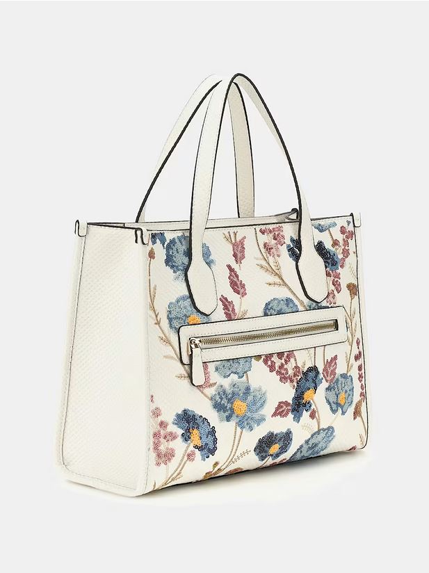 Familia: Zaria Aplicación de lentejuelas estilo naturaleza. Bolsillo posterior con cremallera. Inscripción logotipo frontal de metal.