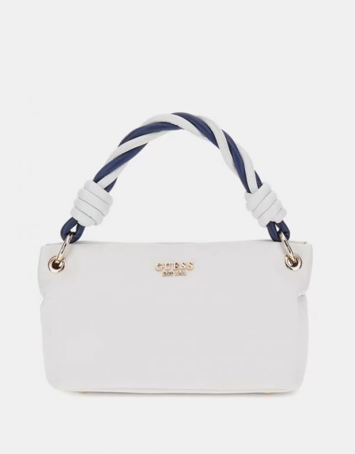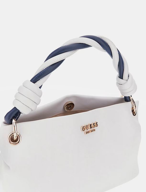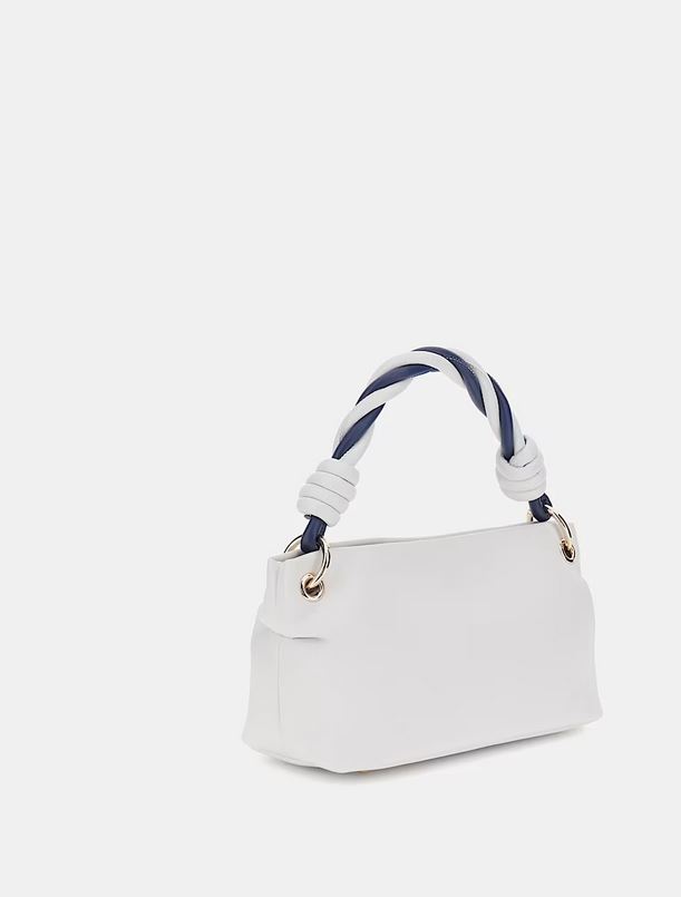 Exterior de piel sintética. Cierre con botón. Piezas metálicas color dorado pálido.