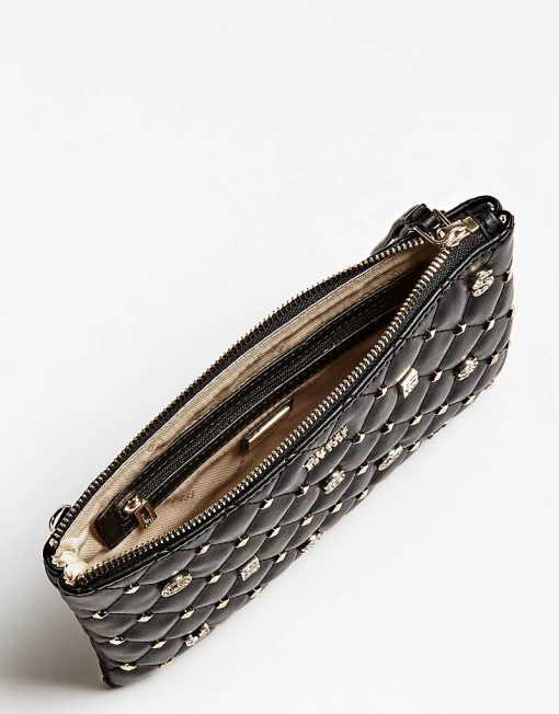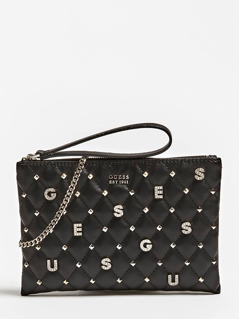 Aplicación lettering con logo, tachas y joya frontales.