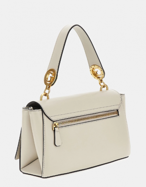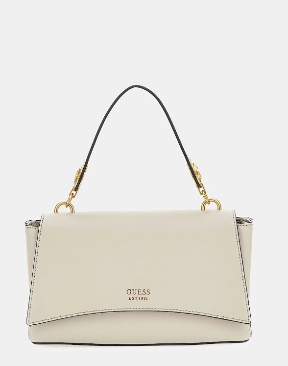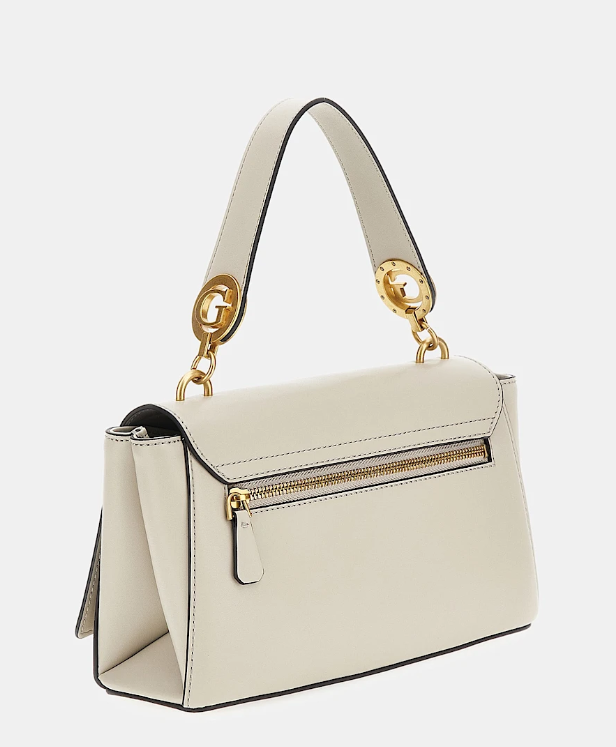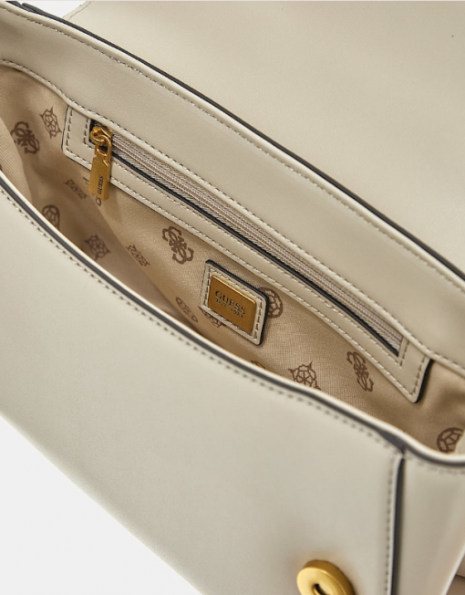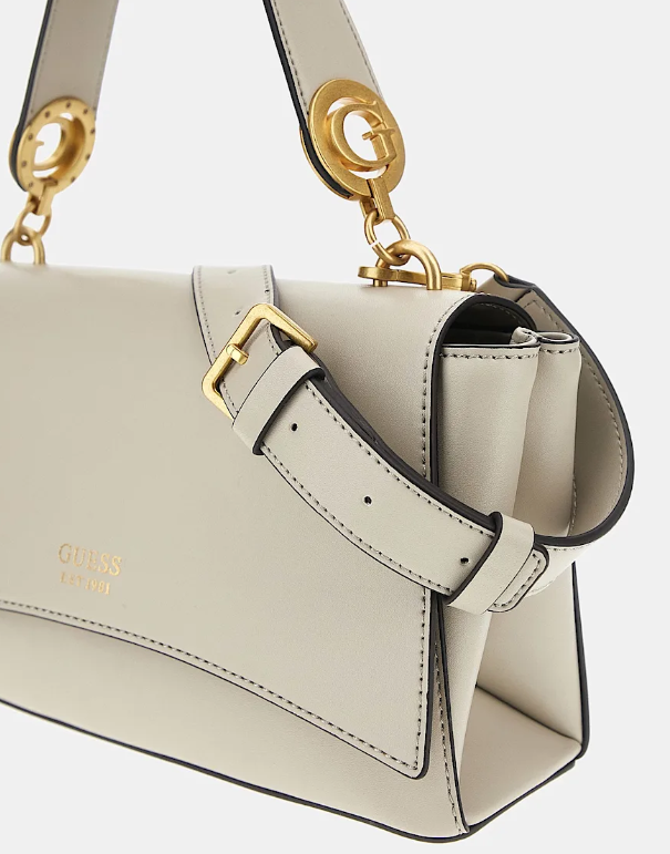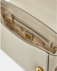 Exterior de piel sintética. Cierre con doble botón. Piezas metálicas de color oro.