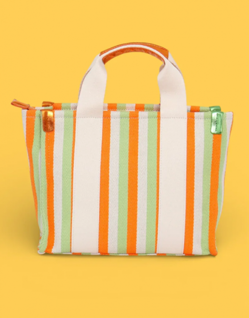 Bolso de lona con un diseño de líneas en tonos naranja que aporta un toque vibrante y moderno a tu día. Confeccionado en material resistente y duradero, es perfecto para llevar tus esenciales con estilo. Su estructura versátil lo hace ideal tanto para el trabajo como para el ocio, combinando funcionalidad y diseño contemporáneo en una sola pieza.