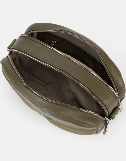 A pesar de su formato compacto, este bolso ofrece una distribución interna excepcional. Cuenta con dos compartimentos independientes con cierre de cremallera, lo que facilita mantener tus objetos bien organizados. Además, en el interior encontrarás bolsillos adicionales para guardar pequeños esenciales como llaves, tarjetas o pintalabios. El bolsillo trasero exterior con cremallera permite tener a mano aquello que necesitas con más frecuencia, como el móvil o la tarjeta de transporte.