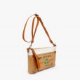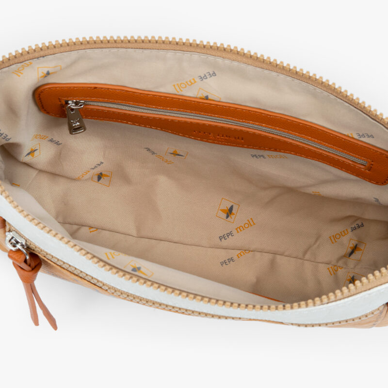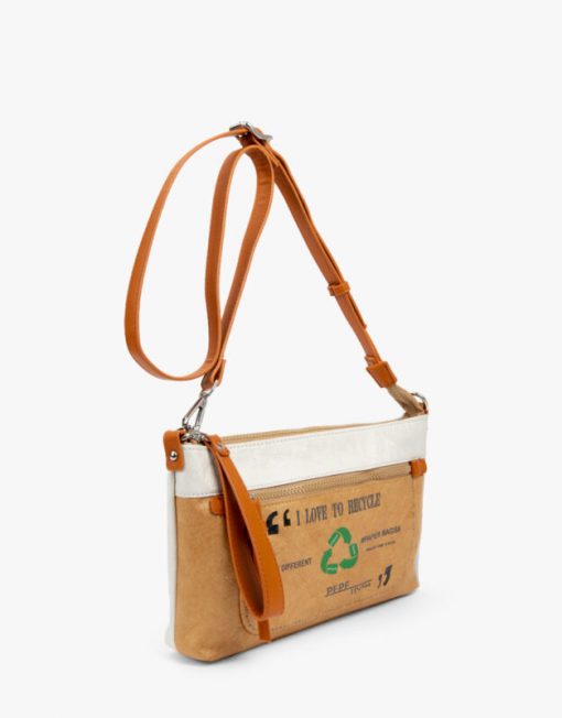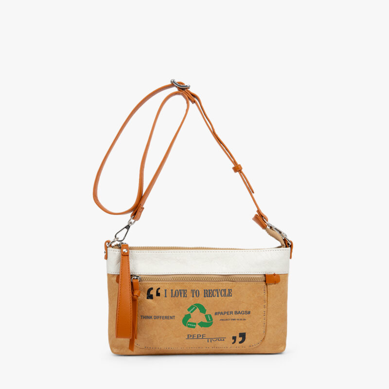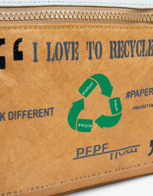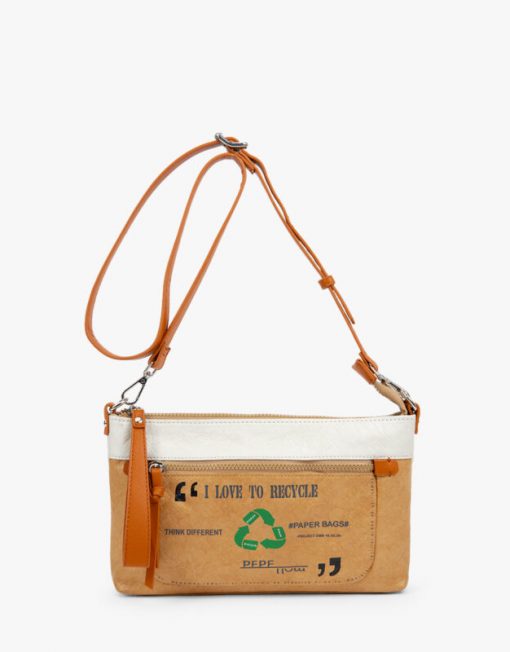 Bolso bandolera disponible en color marrón de Pepe Moll. Si buscas un bolso en el que protagonista sea el color y cuente con un valor añadido, este es el tuyo. Este bolso está fabricado con papel reciclado, pero, además cuenta con un estilo moderno y diferente que te sorprenderá. Cuenta con diferentes bolsillos para llevar tus objetos de forma ordenada. Además, su asa bandolera es extraíble por lo que puedes convertirlo en un bolso de mano.