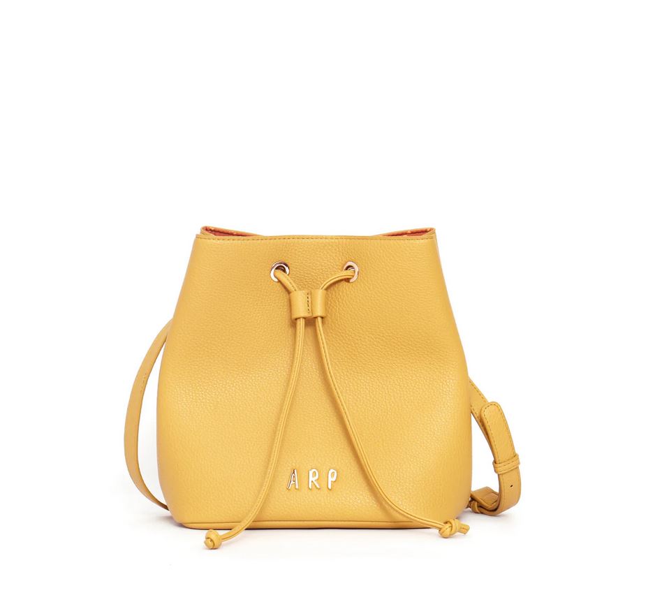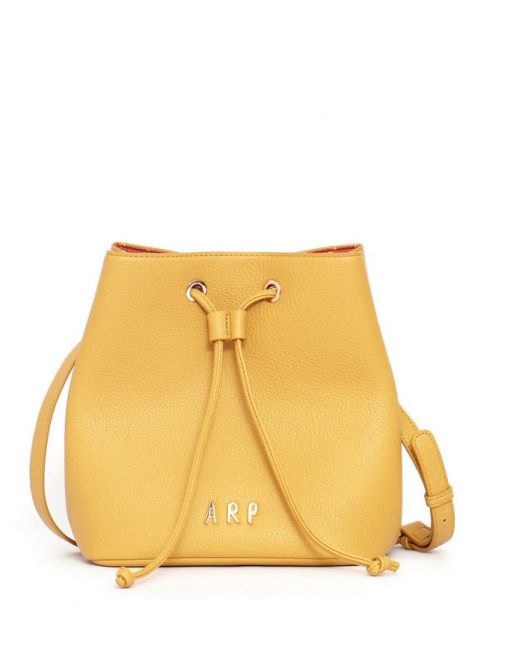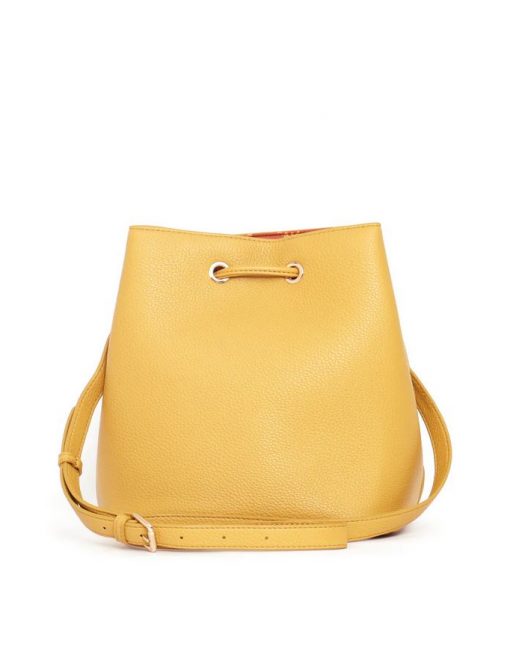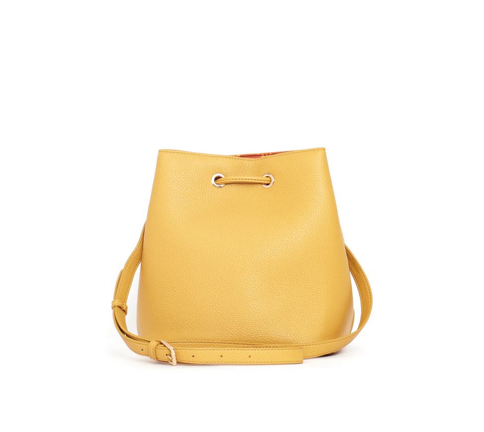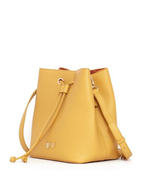 Bolso bombonera contraste mostaza. Medidas: 22x23x16 cm.