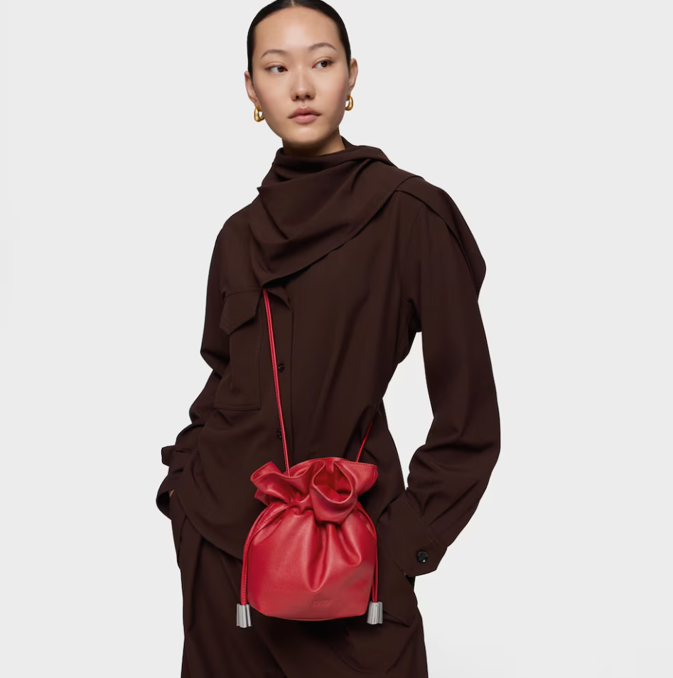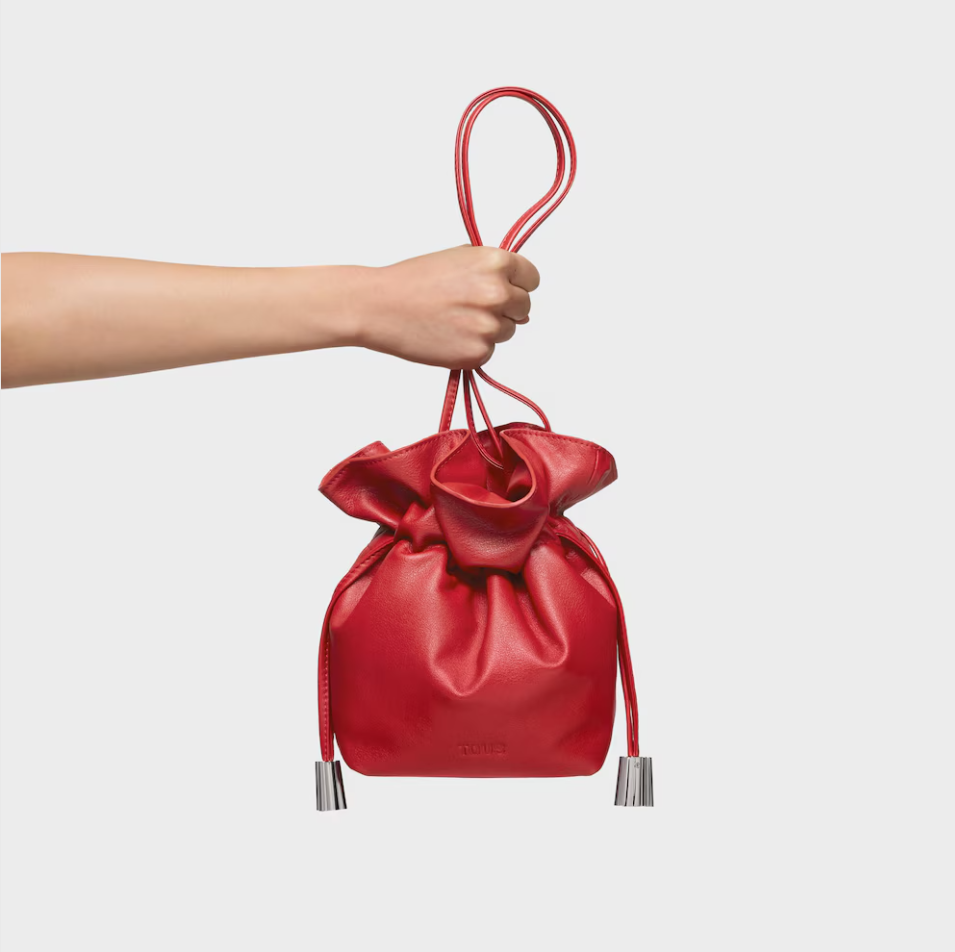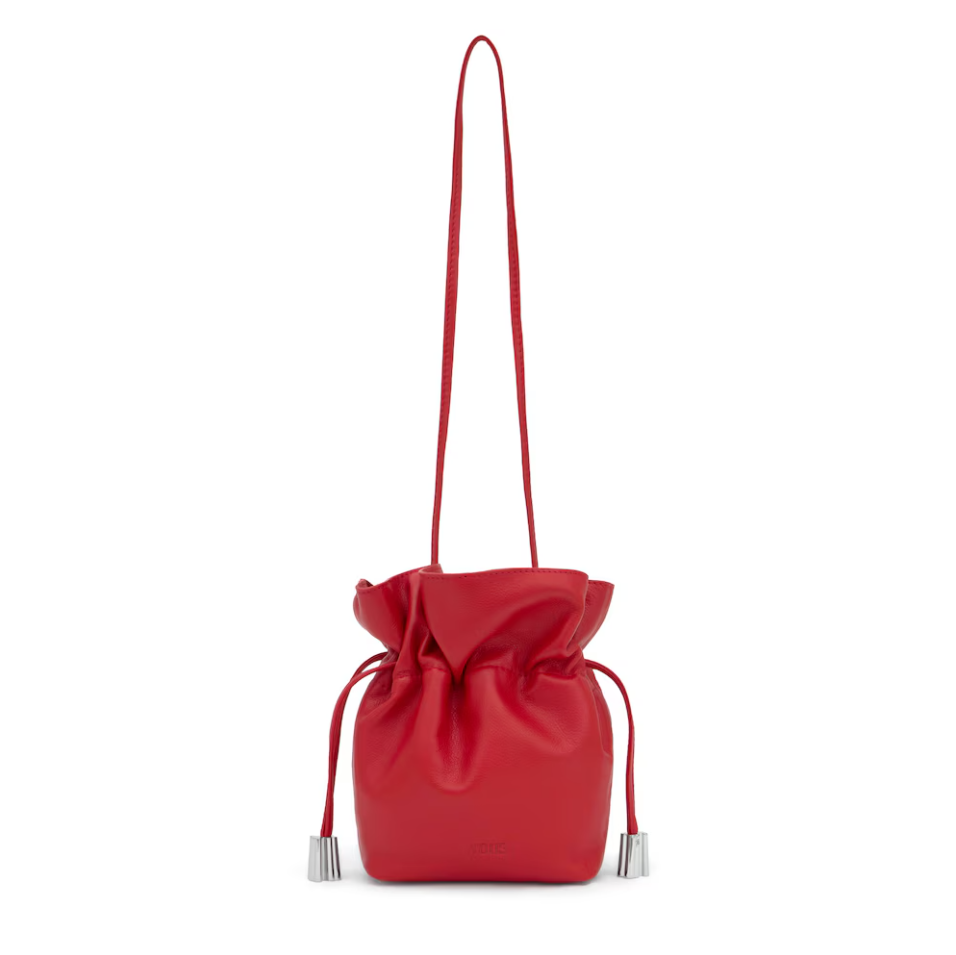 Bolso bombonera pequeña Tous Heritage de piel con certificación LWG en color rojo. Cierre con cordón ajustable. Asa bandolera ajustable y desmontable. Medidas (alto x ancho x fondo): 24 x 22 x24.