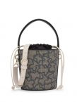 Bolso bombonera de lona Kaos Icon en color negro y detalles en piel sintética. Cierre con cordón ajustable. Asa de hombro fija y asa bandolera extraíble. Medidas (alto x ancho x fondo): 17 x 18 x 4 cm.