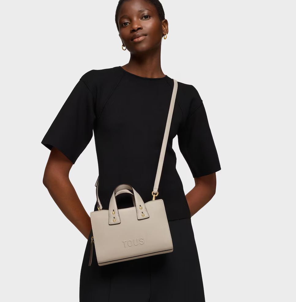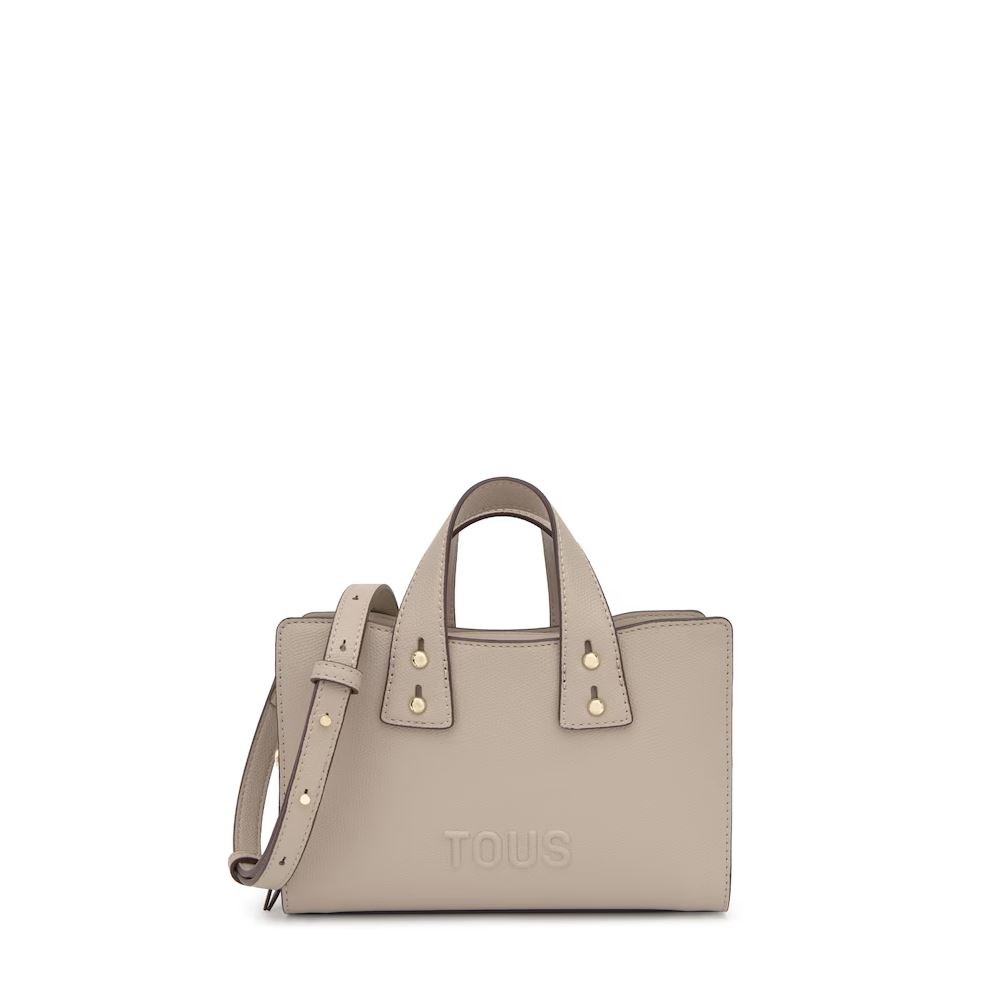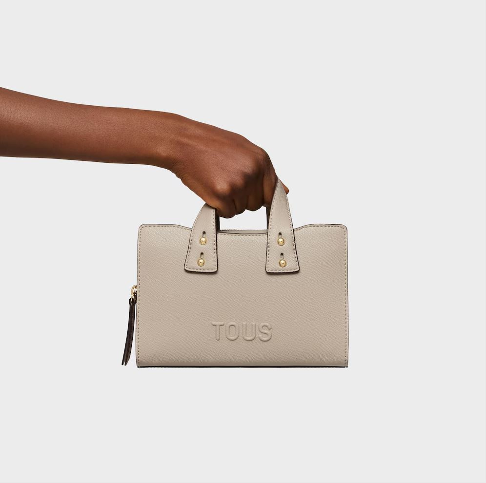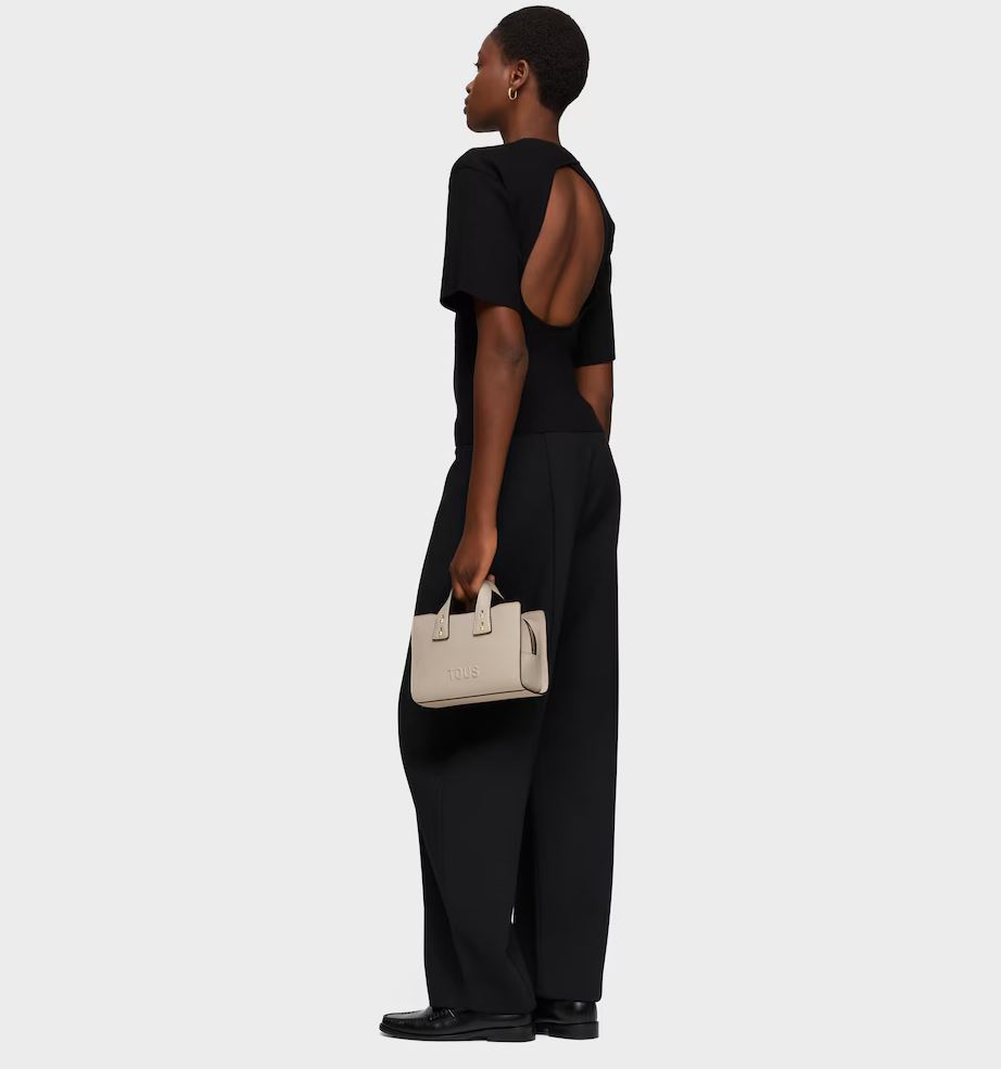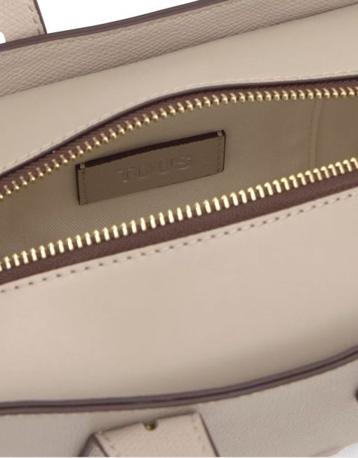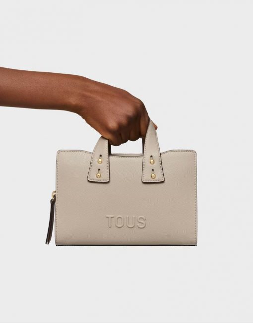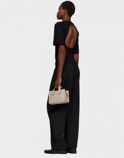 Bolso bowling pequeño TOUS Back to basica de poliuretano en color topo. Cierre de cremallera. Bolsillo interior abierto. Asas fijas de hombro y asa bandolera ajustable y extraíble. Medidas (alto x ancho x fondo): 14,4 x 22 x 9 cm.