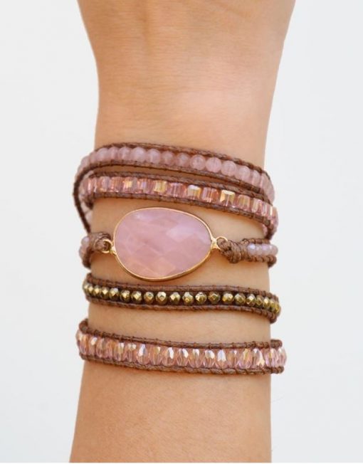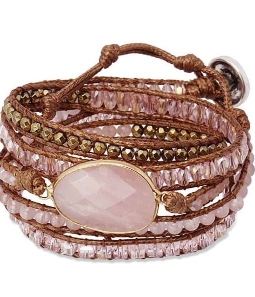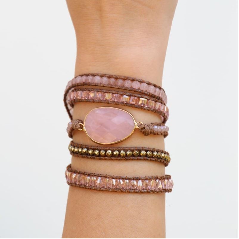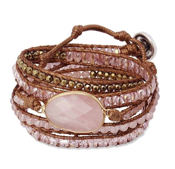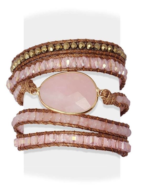 Pulsera de cinco vueltas de inspiración étnica y realizada con materiales como el acero quirúrgico, hematita, piedra natural y cristal. Súper llamativa, es el complemento más exótico de esta temporada. Combínala con un collar largo de colores sobre looks desenfadados. La puedes elegir entre 6 tonalidades de color. El detalle ovalado mide 30 mm y el largo total es de 90 cm.