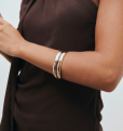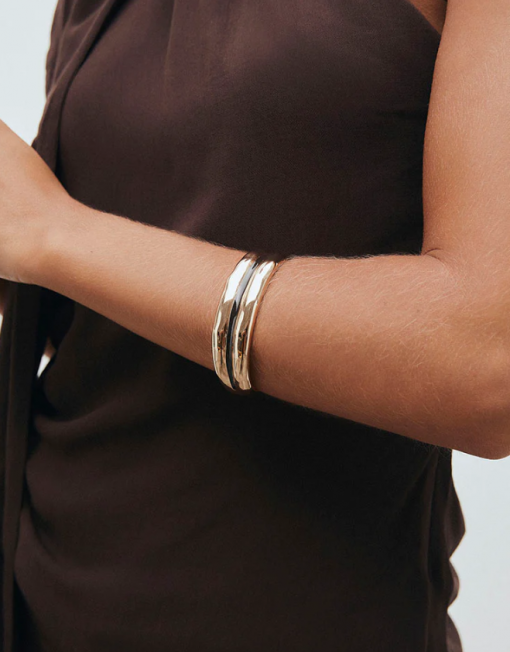 Brazalete dúo Horizonte bañado con una gruesa capa de oro macizo de 18 kt, lo que garantiza una mayor durabilidad. Destaca por la piedra Esmaltes en tono marrón chocolate, color protagonista de la temporada, que aporta textura, brillo y un gesto de estilo propio. Tiene una medida de 60 x 50 mm.