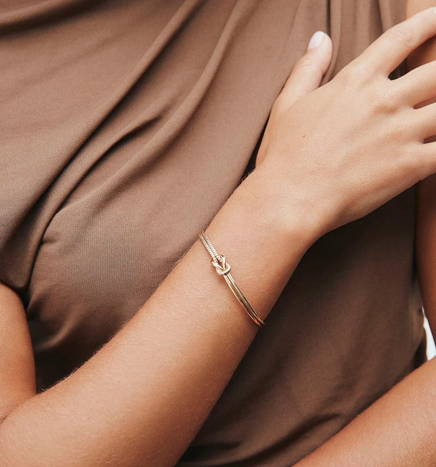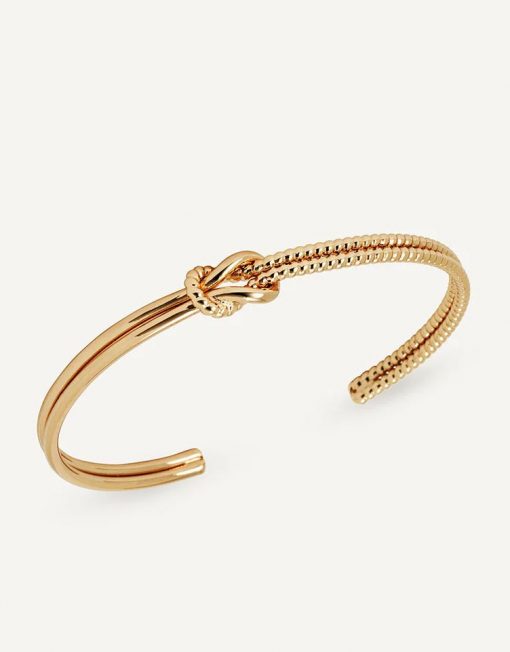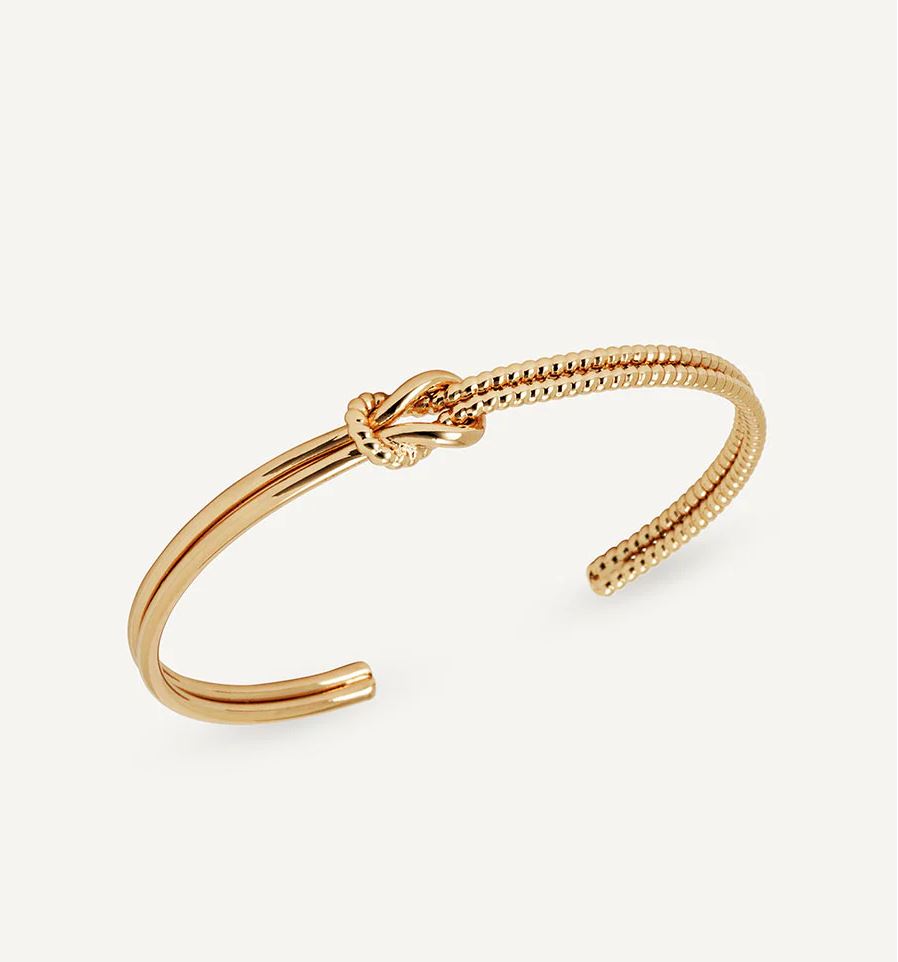 Brazalete rígido Nexo con doble textura bañado con una gruesa capa de oro macizo de 18 kt, lo que garantiza una mayor durabilidad. Tiene una medida de 60 mm. Pertenece a la colección Elementales, una propuesta que vuelve al origen y celebra la belleza de lo sobrio, funcional y duradero. Con formas puras y elegancia silenciosa, son joyas atemporales, versátiles y sutilmente sofisticadas. Los brazaletes de nudo, que simbolizan unión y continuidad, se convierten en el mejor aliado para acompañar tu rutina.