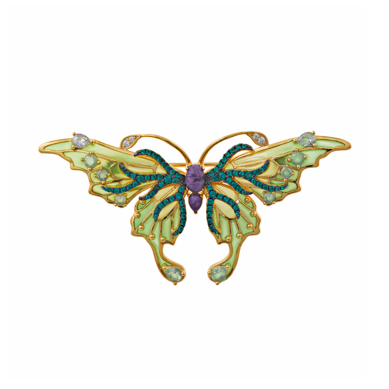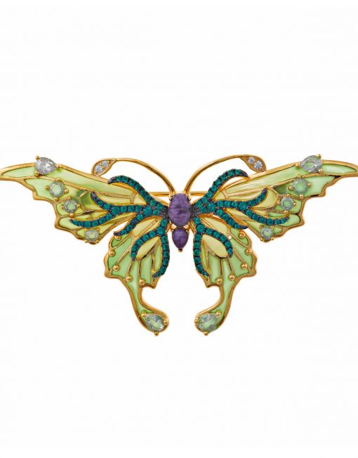 BROCHE SALVATORE 265B0008 PLATA CHAPADO DORADO MARIPOSA ESMALTE VERDE