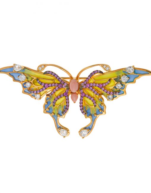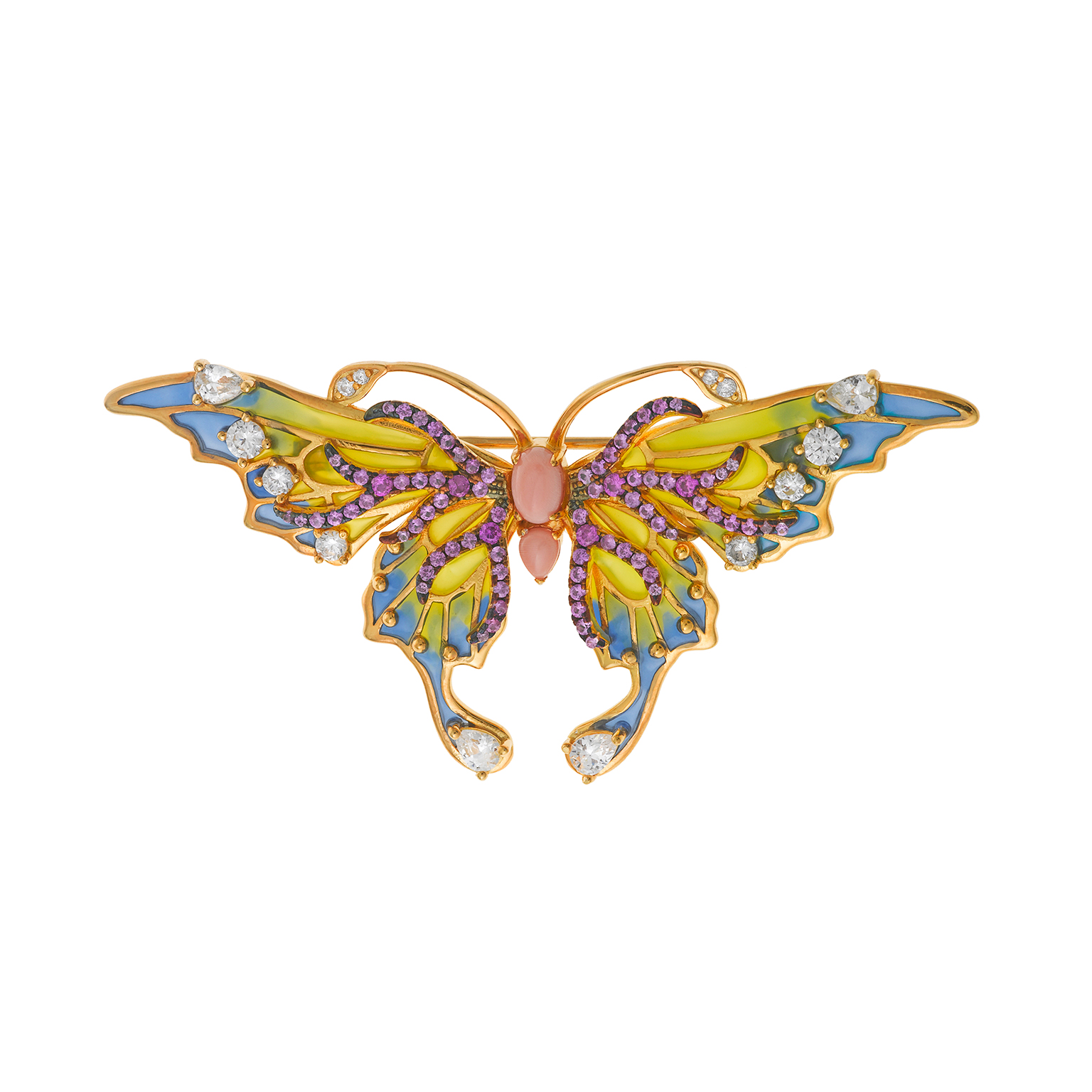 BROCHE SALVATORE 265B0009 PLATA CHAPADO DORADO MARIPOSA ESMALTE AZUL
