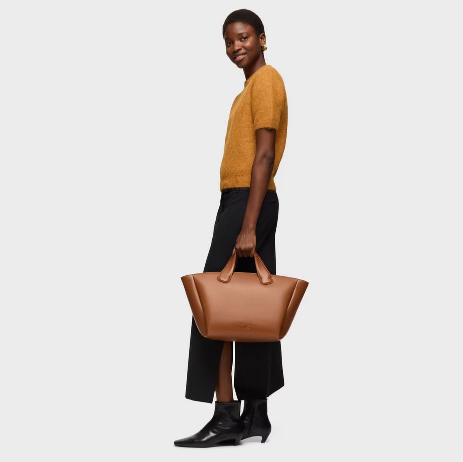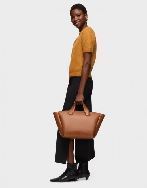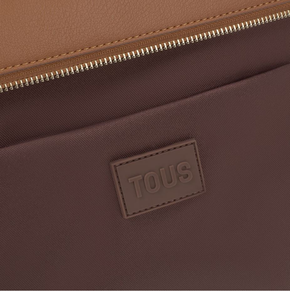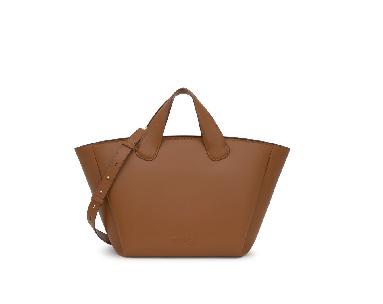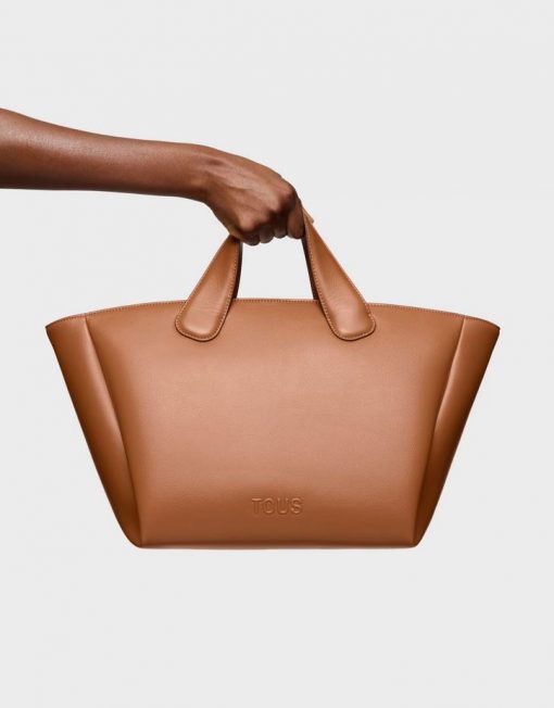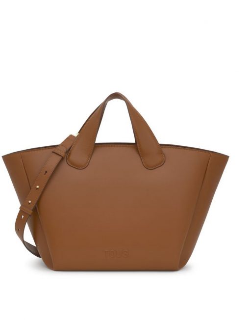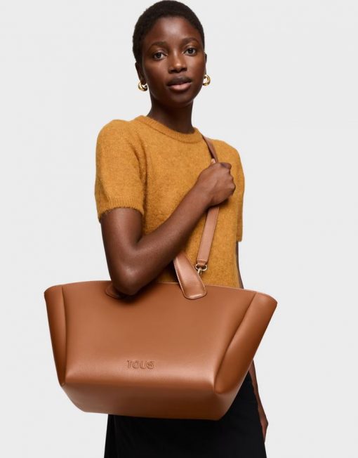 Bolso capazo grande TOUS Bloom de poliuretano en color camel. Cierre de cremallera. Asas fijas de mano y asa de hombro fija. Bolsillo interior abierto. Medidas (alto x ancho x fondo): 27 x 51 x 19 cm.