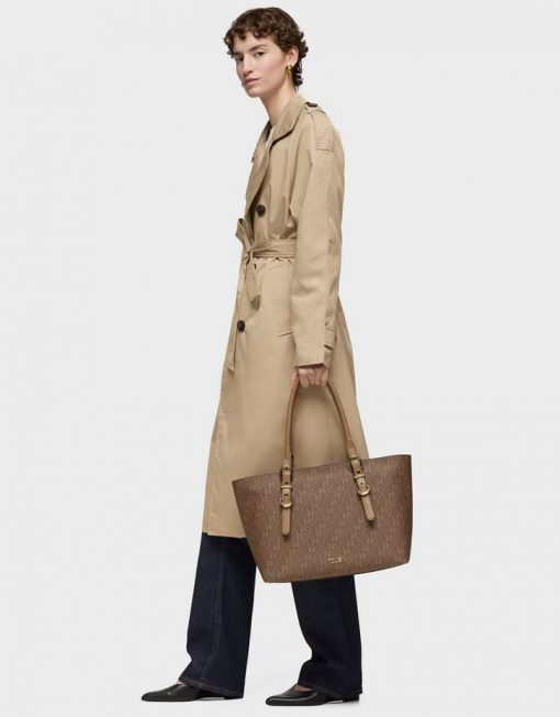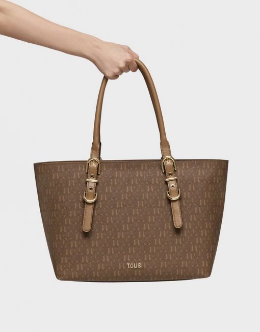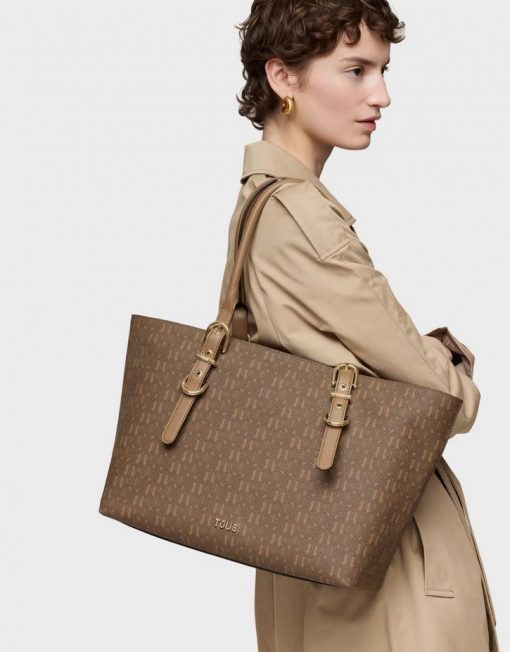 Bolso capazo grande TOUS Buckles Silhouette de lona con detalles de poliuretano en color tierra. Cierre de cremallera. Bolsillo interior con cierre de cremallera. Asas de hombro ajustables. Medidas (alto x ancho x fondo): 24,5 x 56 x 14,5 cm.