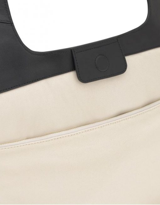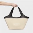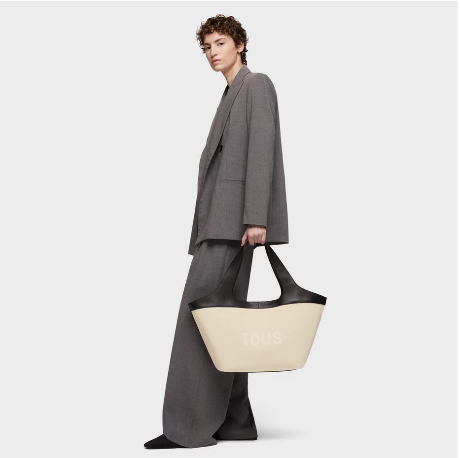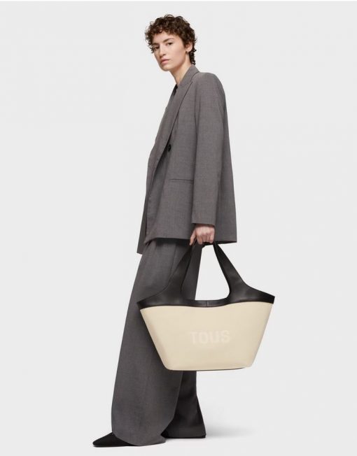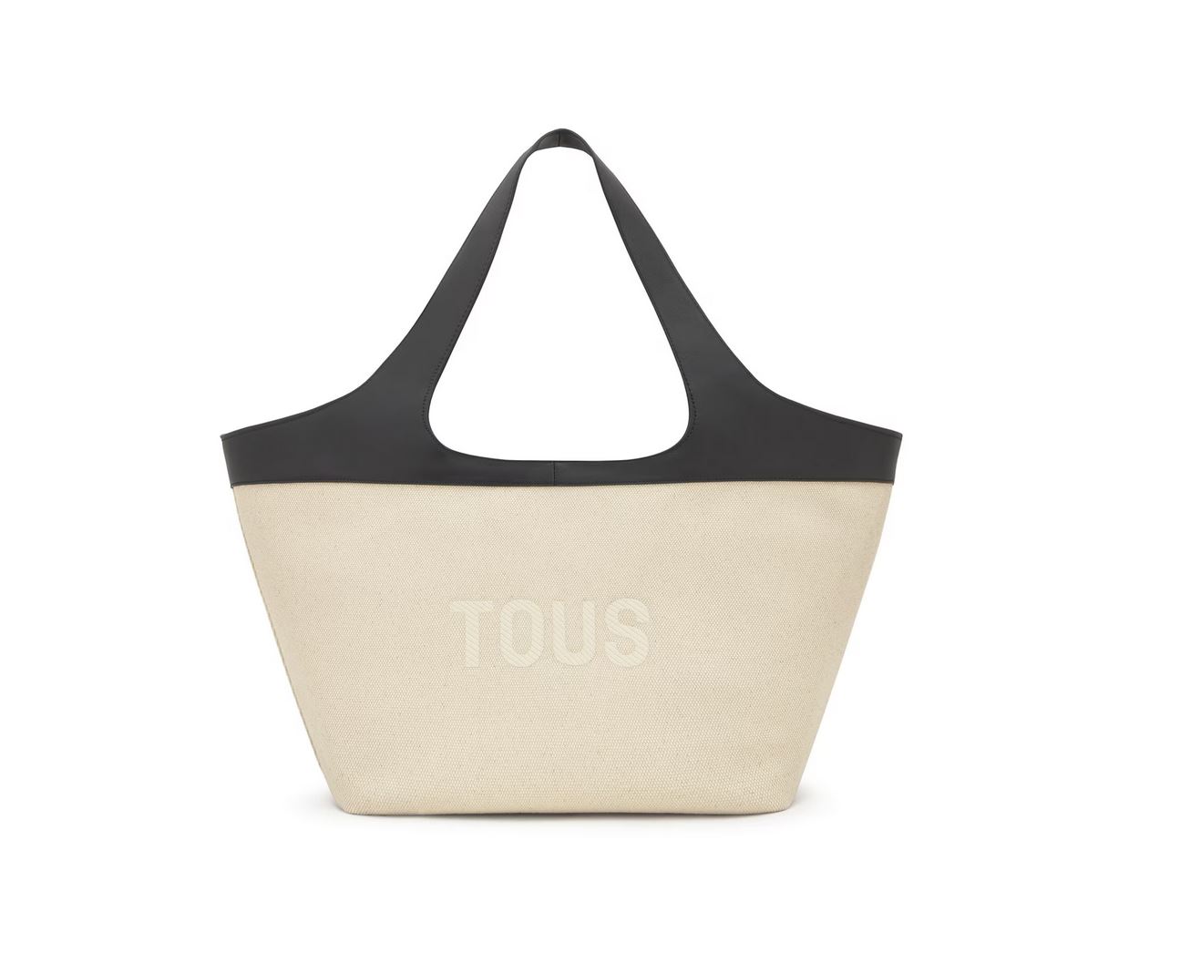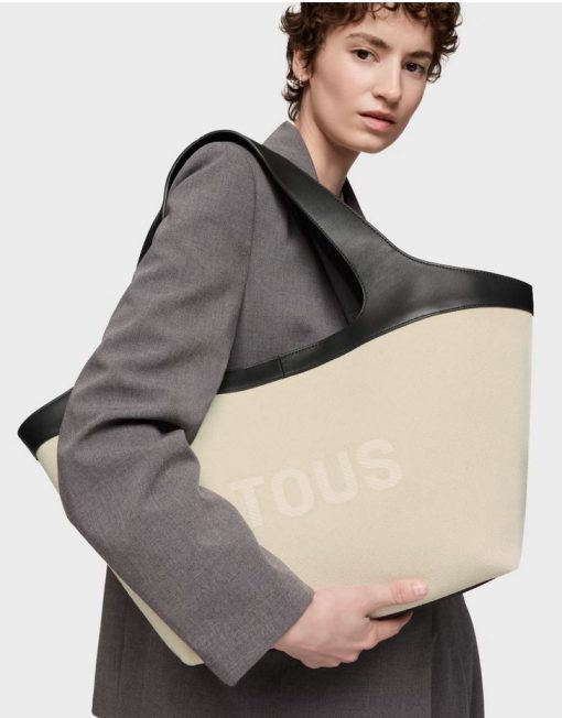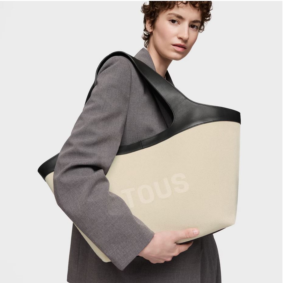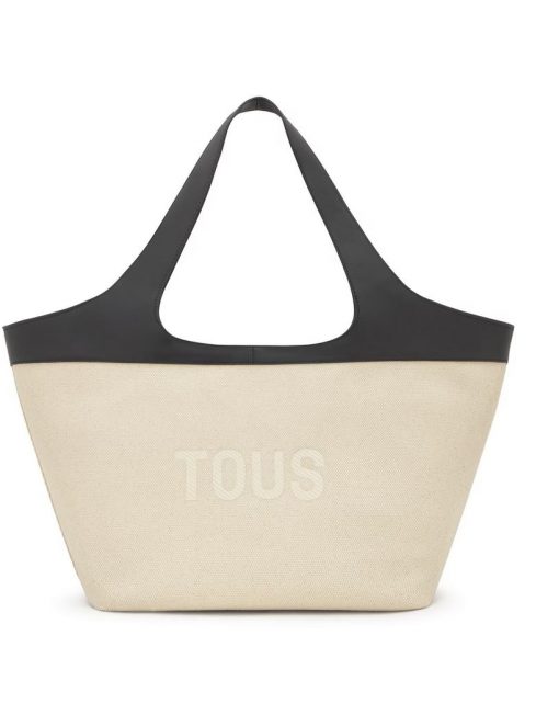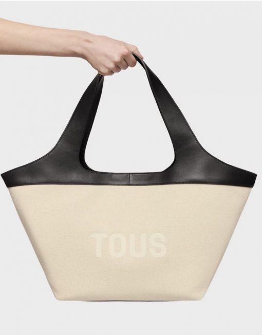 Bolso capazo grande TOUS Lirio Canvas de poliuretano en color negro y beige. Cierre de botón magnético. Compartimento interior con cierre de cremallera. Asas fijas de hombro . Medidas (alto x ancho x fondo): 32 x 58 x 14 cm.