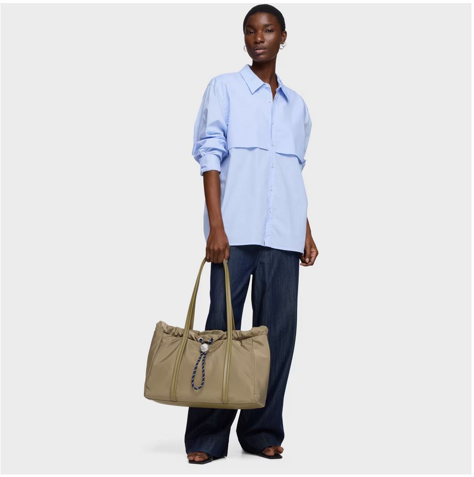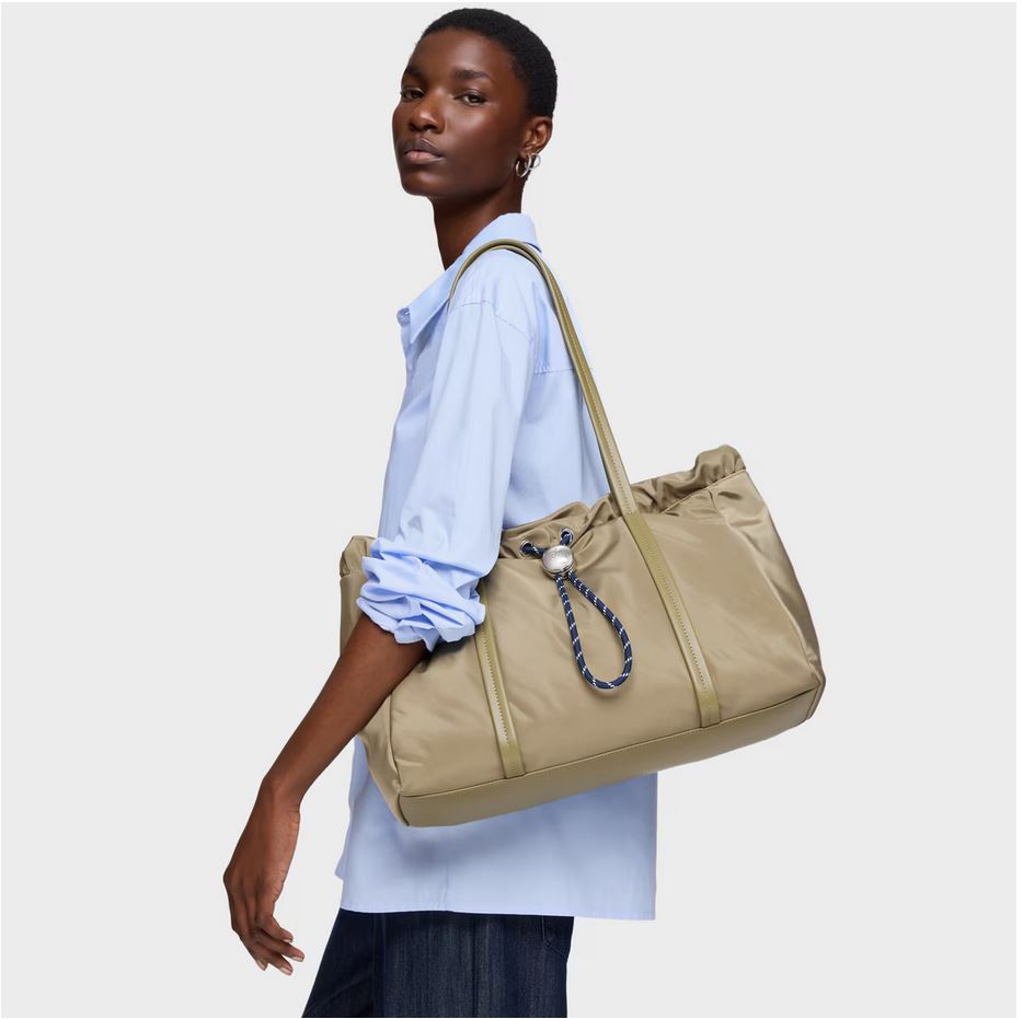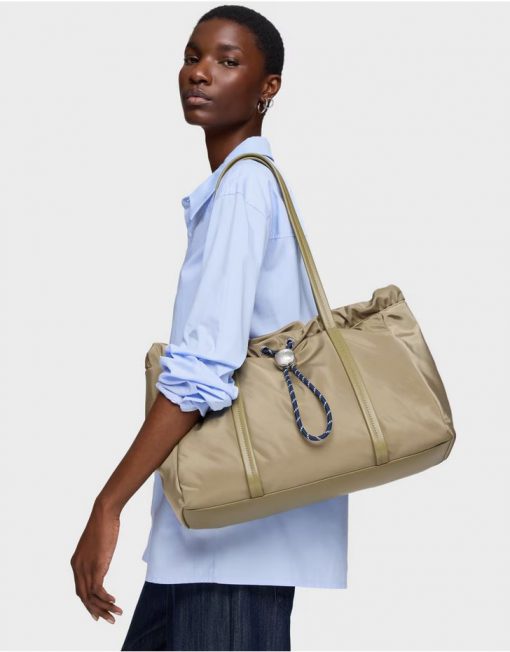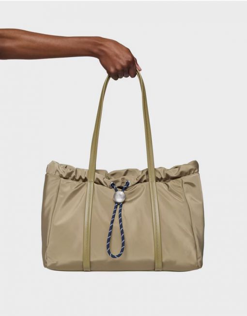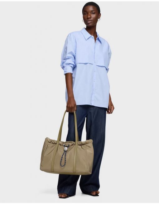 Bolso capazo grande Empire Soft de poliéster reciclado con detalles en poliuretano de color verde oliva. Cierre magnético. Bolsillo interior con cremallera. Asas fijas de hombro. Medidas (alto x ancho x fondo): 29 x 42,5 x 16 cm.