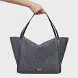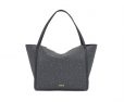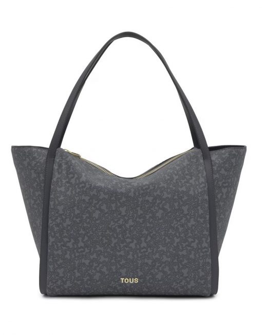 Bolso capazo grande Kaos Mini Lines de lona con detalles de piel sintética en color gris socuro. Cierre de cremallera. Bolsillo interior con cremallera. Asa fija de hombro. Medidas (alto x ancho x fondo): 33 x 48 x 18,5 cm