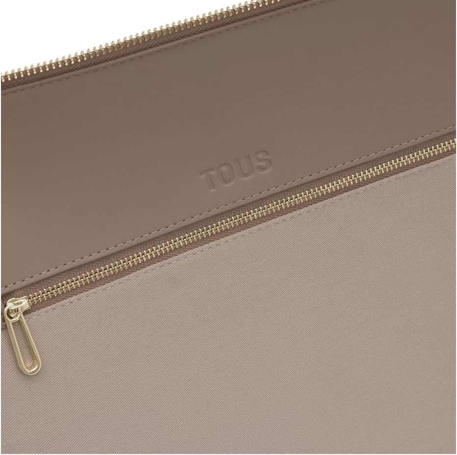 Bolso capazo grande Kaos Mini Lines de lona con detalles de poliuretano en color topo. Cierre de cremallera. Bolsillo interior con cremallera. Asa fija de hombro. Medidas (alto x ancho x fondo): 33 x 48 x 18,5 cm.