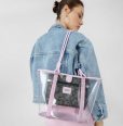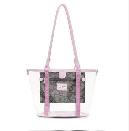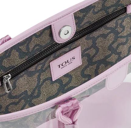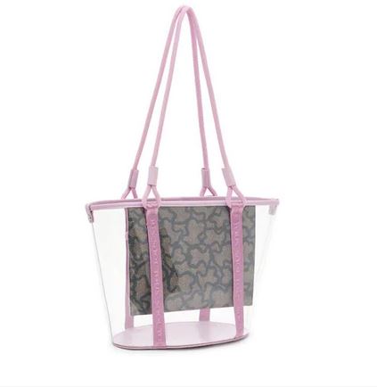 Bolso capazo mediano TOUS Kaos Summer color malva de vinilo transparente abierto con dos tiras laterales que recubren la parte externa, reforzando la estructura.